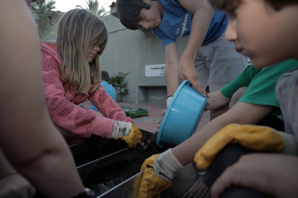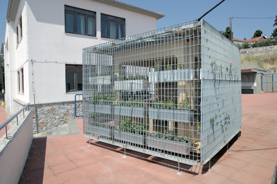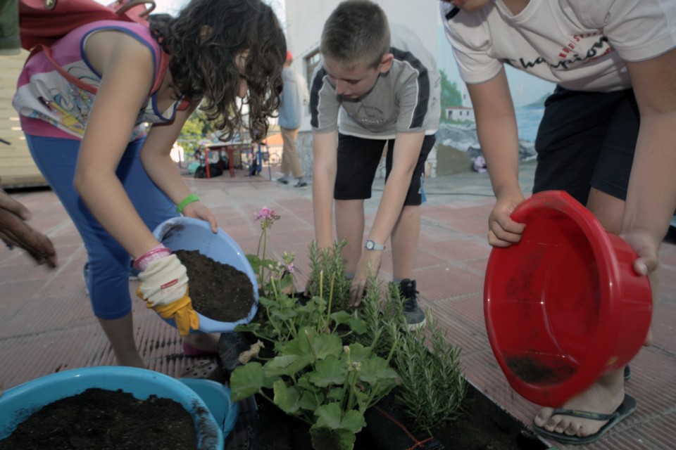 Χαρακτηριστική άλλωστε ήταν και η συμμετοχή των μαθητών στην κατασκευή. Φυσικά, ένας από τους σκοπούς του ΠΕ.ΠΕ. –σύμφωνα και με την ομάδα του Κοινού Τόπου- είναι να «μπουν» στο επίκεντρο της εκπαιδευτικής διαδικασίας. Μπορεί να μην έκοβαν τα ξύλα, είχαν αναλάβει όμως να μεταφυτεύσουν τα βότανα -προσφορά του Κήπου του Ιπποκράτη– που «καλύπτουν» τους τρεις τοίχους.  «Όταν τα φυτά μεγαλώσουν θα δέσουν με τέτοιο τρόπο, που θα δημιουργούν ένα “τείχος” γεμάτο πράσινο και μυρωδιές. Κατά τη διάρκεια της σχολικής χρονιάς τα παιδιά θα έχουν υπ’ ευθύνη τους τη φροντίδα του περιπτέρου. Για το καλοκαίρι έχουμε εγκαταστήσει μηχανισμό αυτόματου ποτίσματος, από Σεπτέμβρη όμως τα ίδια τα παιδιά θα αναλάβουν δράση».