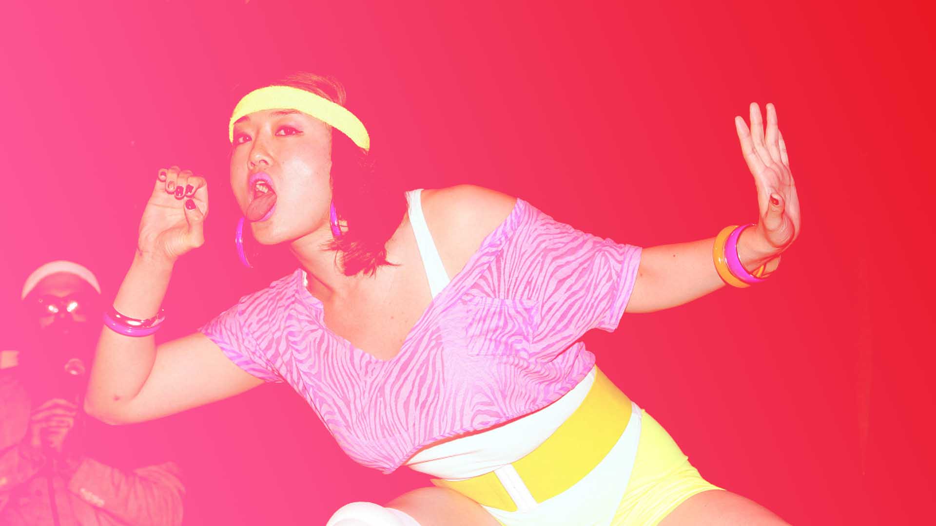 Πέφτει στα γόνατα, κοιτάει με λάγνο ύφος έναν αόρατο πούτσο που βρίσκεται μπροστά στο πρόσωπό της, τον πιάνει με το δεξί χέρι και αρχίζει να γλείφει στον αέρα ενώ με το αριστερό χουφτώνει τα αρχίδια, ή μάλλον το σημείο που θα κρέμονταν τα αρχίδια κάτω από τον υποθετικό πούτσο. Το πλήθος από κάτω παραληρεί όταν το κορίτσι φτύνει αυτό που κανονικά θα έπρεπε να ήταν μπροστά της αλλά δεν είναι. Μπερδευτήκατε;