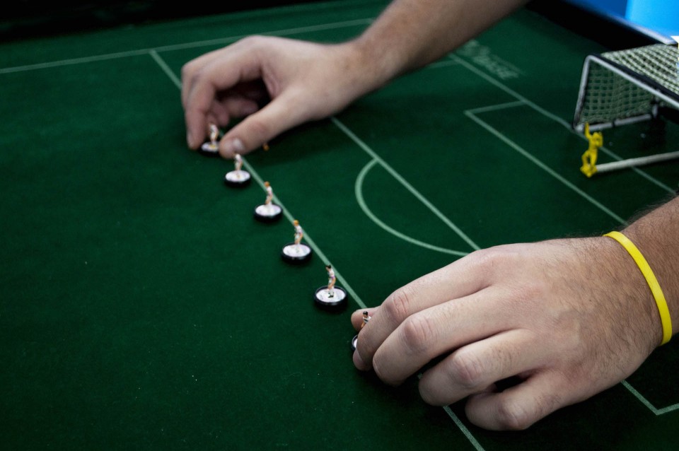 Το Σάββατο 13 Φεβρουαρίου στο club των Roligans στην Ηλιούπολη διοργανώθηκε ένα International Open τουρνουά όπου συμμετείχαν δεκαέξι ελληνικές ομάδες Σουμπούτεο και η Popaganda ήταν εκεί. Μιλήσαμε με τον Θανάση Βλασσόπουλο, βετεράνο παίκτη του Πρωτέα Νέου Κόσμου που μας ξενάγησε στο τουρνουά, εξηγώντας παράλληλα τους κανόνες του ομαδικού παιχνιδιού. Οι ομάδες αναμετρώνται μεταξύ τους σε τέσσερα διαφορετικά τραπέζια, με τα επιμέρους τελικά σκορ να αθροίζονται ώστε στο τέλος να διαμορφωθεί το συνολικό τελικό σκορ του μεταξύ τους ματς. Σε αυτό το επίπεδο τα επί μέρους σκορ δεν έχουν ιδιαίτερη σημασία, όπως μας είπε, καθώς μετράει μόνο η νίκη και όχι η διαφορά τερμάτων. Όταν όμως οι ομάδες προχωρήσουν στο νοκ άουτ επίπεδο, οι στρατηγικές μπαίνουν περισσότερο στο παιχνίδι καθώς αρχίζει να προσμετράται το goal average. Και στα δύο στάδια παίζει ένας παίκτης από κάθε ομάδα σε κάθε τραπέζι, με περιορισμένο αριθμό αλλαγών, ενώ στο κέντρο βρίσκεται ένας ακόμα παίκτης της κάθε ομάδας ο οποίος κοουτσάρει τους δικούς του. Η διαδικασία της κλήρωσης έχει ιδιαίτερη σημασία, καθώς η τυχερή ομάδα επιλέγει αντίπαλο ανάλογα με το πώς «ματσάρουν» τα επιμέρους τεχνικά χαρακτηριστικά. Ο Θανάσης μου τονίζει πώς κάθε παίκτης έχει τις δικές του αρετές κι αδυναμίες, όπως άλλωστε συμβαίνει και στο κανονικό ποδόσφαιρο.