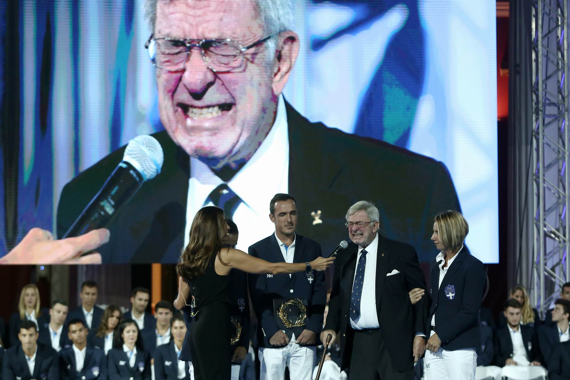 Ιδιαίτερα συγκινημένος ο τέως βασιλιάς Κωνσταντίνος, ολυμπιονίκης ιστιοπλοΐας και ο ίδιος το 1960, βράβευσε τους επίσης ιστιοπλόους Παναγιώτη Μάντη και Παύλο Καγιαλή για την κατάκτηση του χάλκινου μεταλλίου στους Ολυμπιακούς Αγώνες.