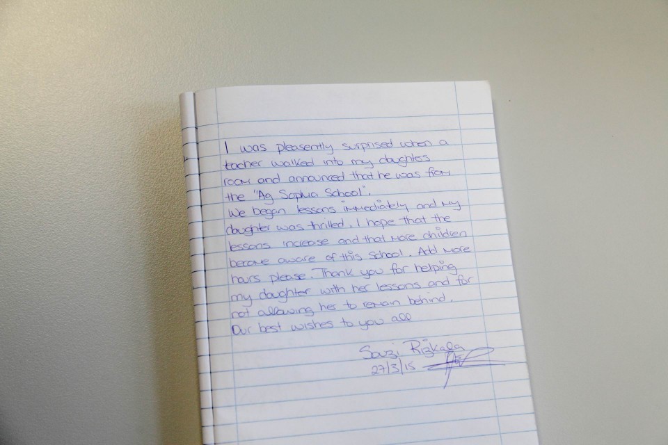 Κείμενο που έχει γράψει Ελληνίδα μητερα που ζε στο Λίβανο και το παδί της παρακολούθησε μαθήματα στο σχολείο ενώ νοσηλευόταν.