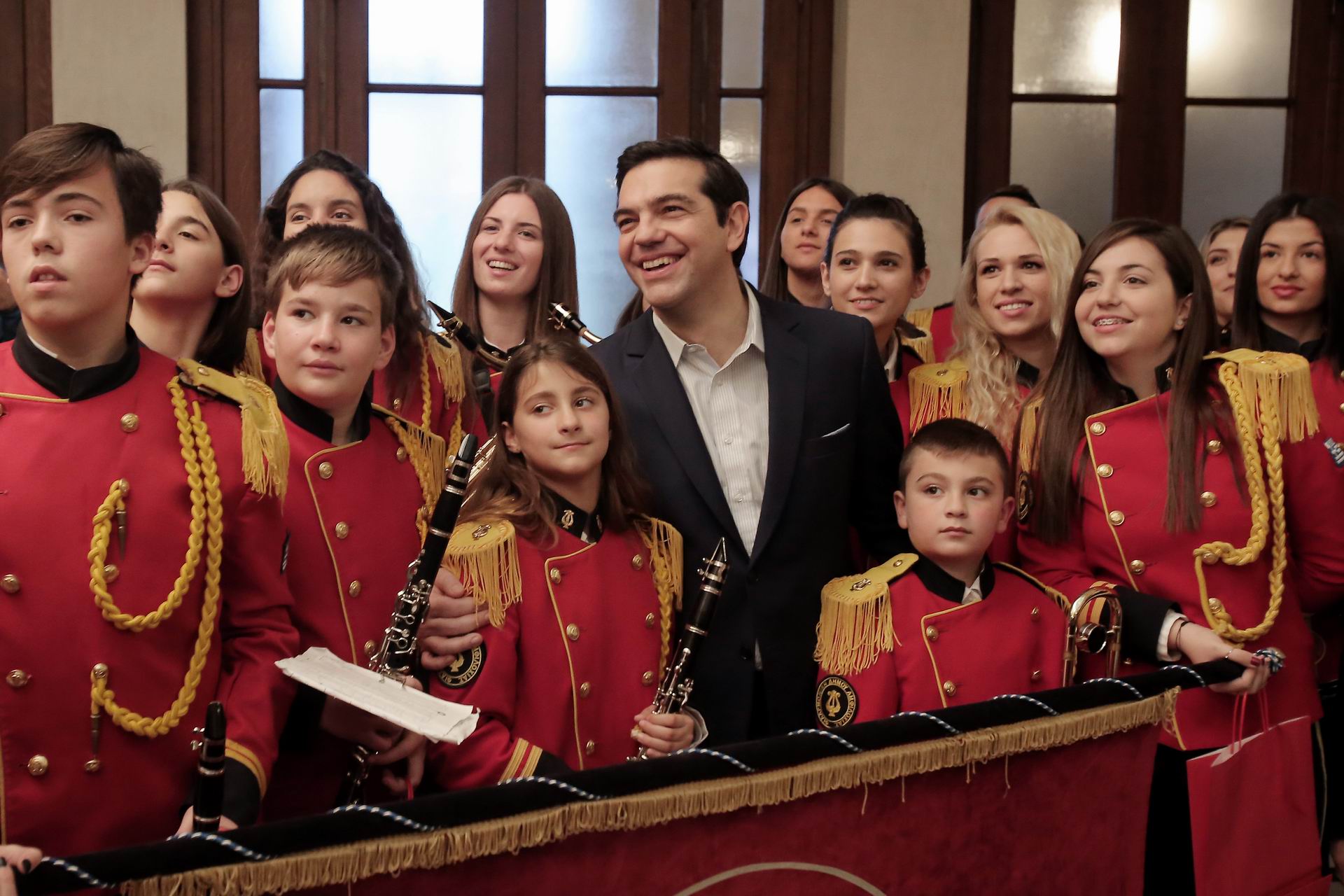 Το Μουσικό Σχολείο Αθήνας και η Δημοτική Φιλαρμονική Αμφιλοχίας έψαλαν τα κάλαντα των Χριστουγέννων στον πρωθυπουργό Αλέξη Τσίπρα. Οι μαθητές ξεκίνησαν με τα αγγλικά κάλαντα, το γνωστό «Jingle Bells» και όταν τελείωσαν ο πρωθυπουργός παρατήρησε «αυτά είναι του ευρώ… Θέλω παραδοσιακά κάλαντα», ενώ ρώτησε εάν υπάρχουν μαθητές που παίζουν μπουζούκι. Η χορωδία των μαθητών συνέχισε με το «Ave Maria» και ενισχύθηκε από άλλους μαθητές με παραδοσιακά όργανα. Ακολούθησε η μπάντα του Δήμου Αμφιλοχίας που έπαιξε τα κάλαντα και παραδοσιακές χριστουγεννιάτικες μελωδίες.