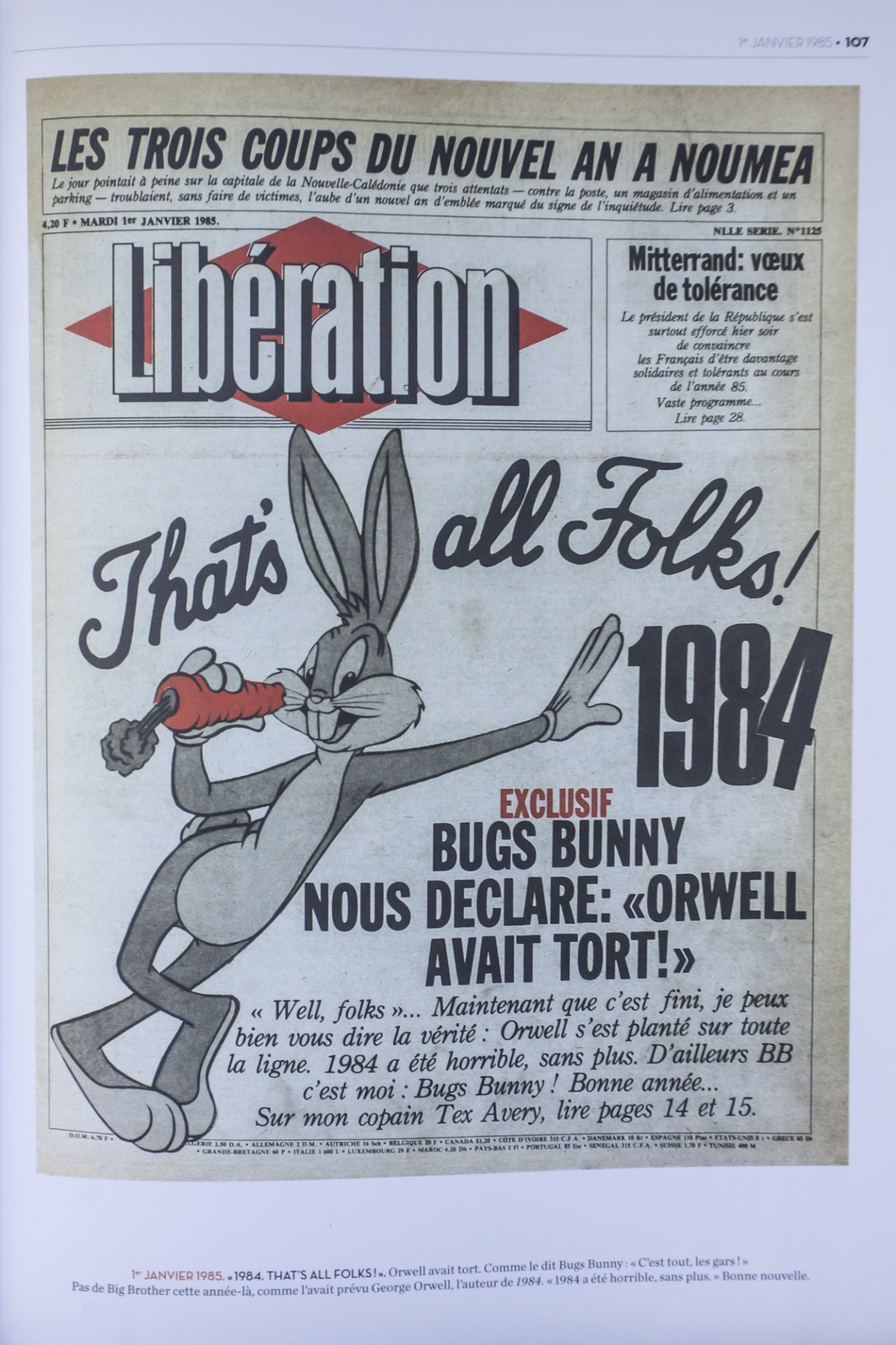 ! Ιανουαρίου 1985. Ο Μπαγκς Μπάνι μας δηλώνει: Ο Όργουελ έπεσε έξω. Τίποτε από όσα φοβερά προέβλεπε για το 1984 δεν συνέβη.