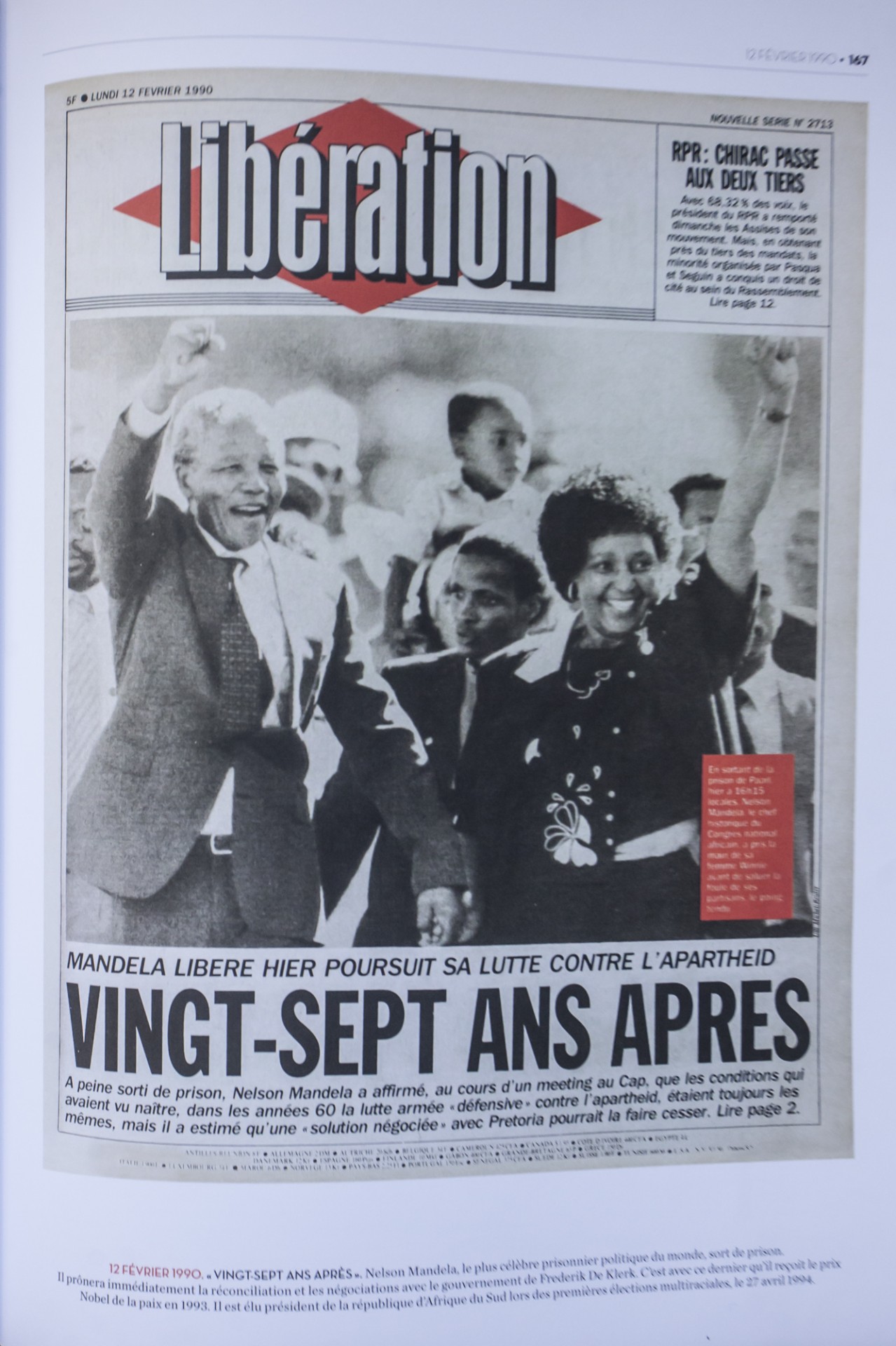 12 φεβρουαρίου 1990 : Εικοσιεπτά χρόνια μετά είναι ο τίτλος του πρωτοσέλιδου για την απελευθέρωση του Νέλσον Μαντέλα