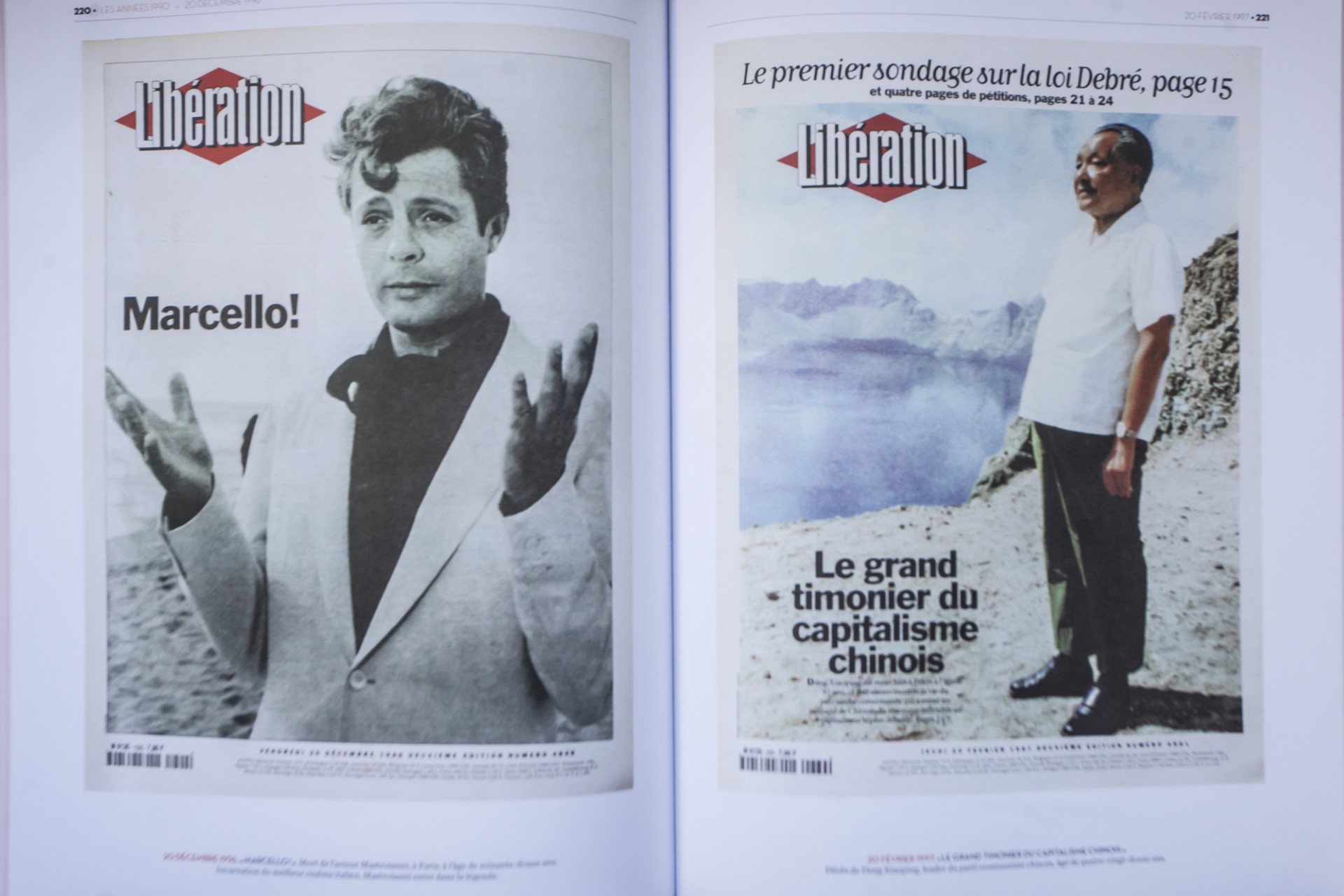 Αριστερά, 20 Δεκεμβρίου 1996, θάνατος του Μαρτσέλλο Μαστρογιάννι, δεξιά, 20 Φεβρουαρίου 1997, θάνατος του Ντενγκ Χσιαοπίνγκ: " Ο Μεγάλος Τιμονιέρης του κινεζικού καπιταλισμου¨