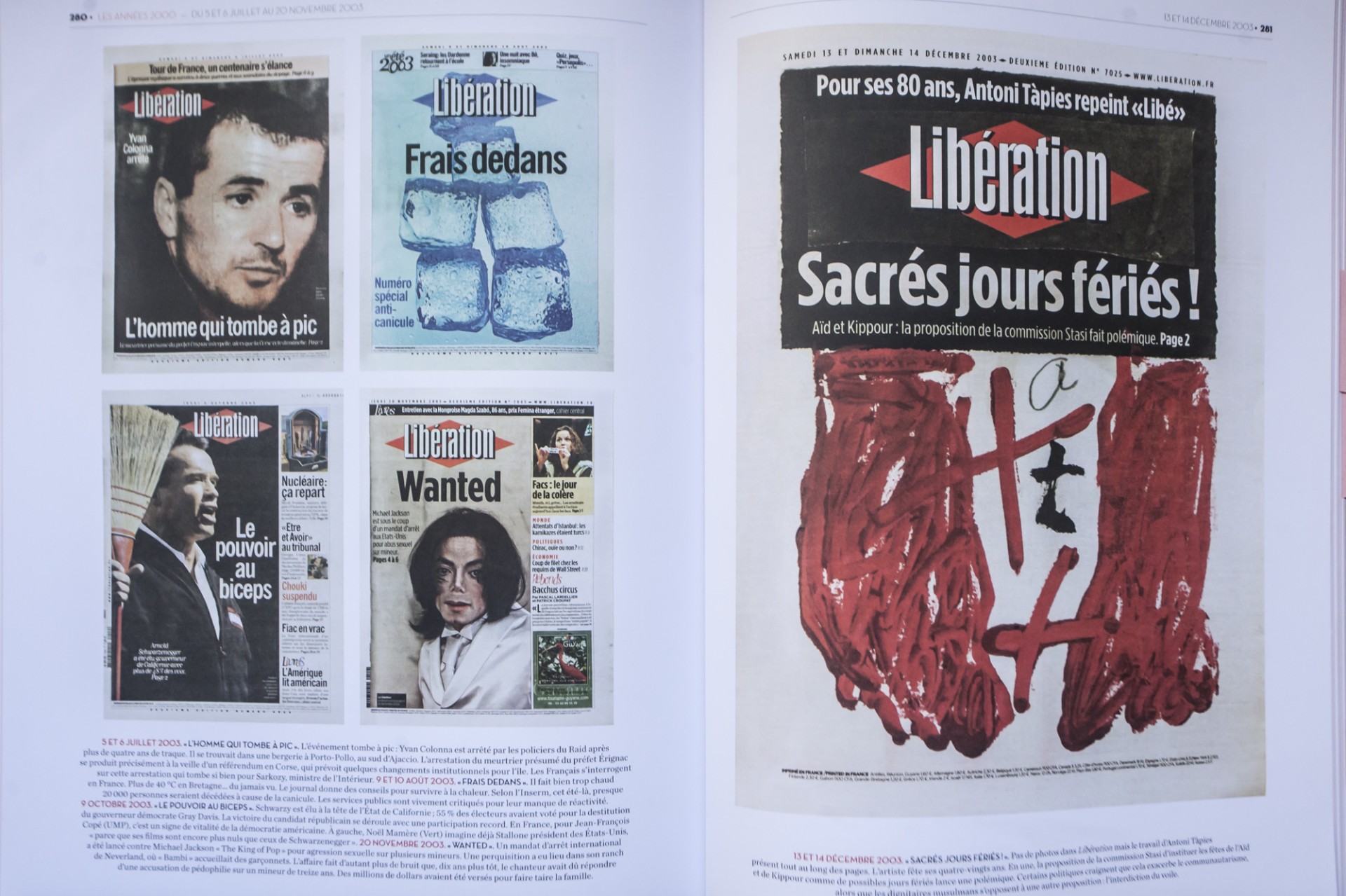 13-14 Δεκεμβρίου 2003 , για τα 80στά του γενέθλια, ο Άντονι Ταπιές εικονογραφεί όλη την εφημερίδα-αντί φωτογραφιών.Μεταξύ των πρωτοσέλιδων αριστερά και ένα ειδικό τεύχος κατά του καύσωνα