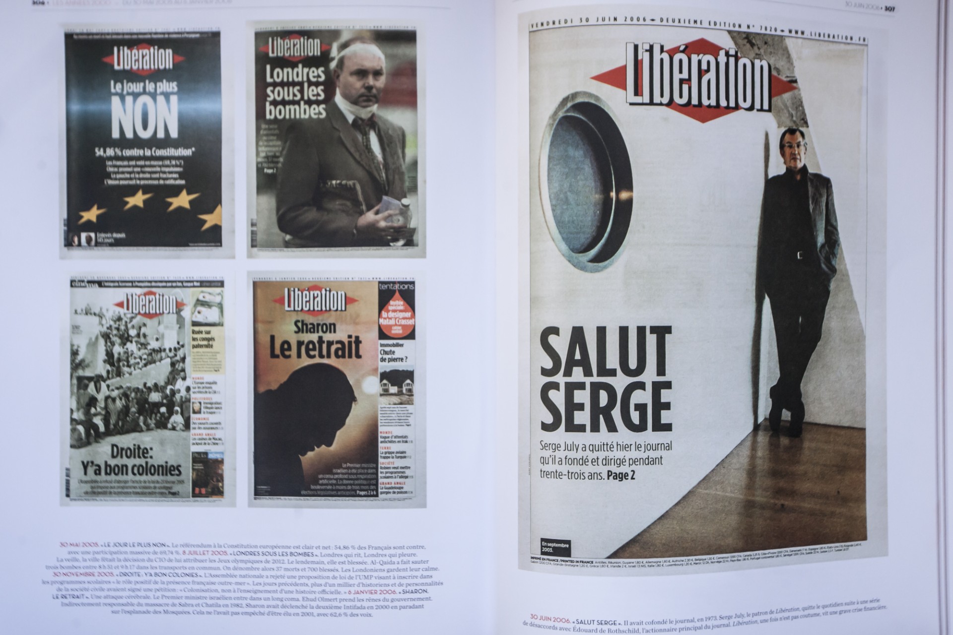 30 Ιουνίου 2006, Η Liberation αλλάζει σελίδα: Ο συνιδρυτής και επί 33 χρόνια Διευθυντής της εφημερίδας Σερζ Ζυλί αποχωρεί και οι συντάκτες τον αποχαιρετούν με ένα πρωτοσέλιδο: Γεια σου Σερζ