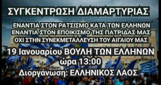 Για σήμερα Κυριακή 19 Ιανουαρίου ήταν προγραμματισμένο συλλαλητήριο στο Σύνταγμα.