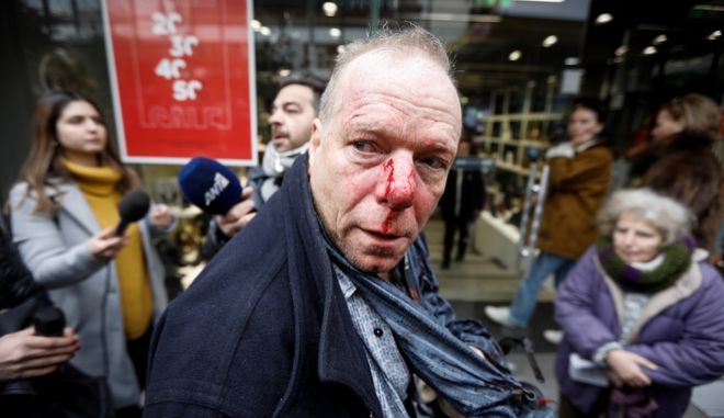 Το πρόσωπο της φωτογραφίας που δέχθηκε επίθεση είναι ο γερμανός δημοσιογράφος, Θωμάς Ιακόμπι, ανταποκριτής ξένων μέσων στην Ελλάδα και στοχοποιημένος από τους ακροδεξιούς (έχει πέσει θύμα επίθεσης και στο παρελθόν) λόγω της συμμετοχής του στο ντοκιμαντέρ της Αγγελικής Κουρούνη με θέμα την Χρυσή Αυγή