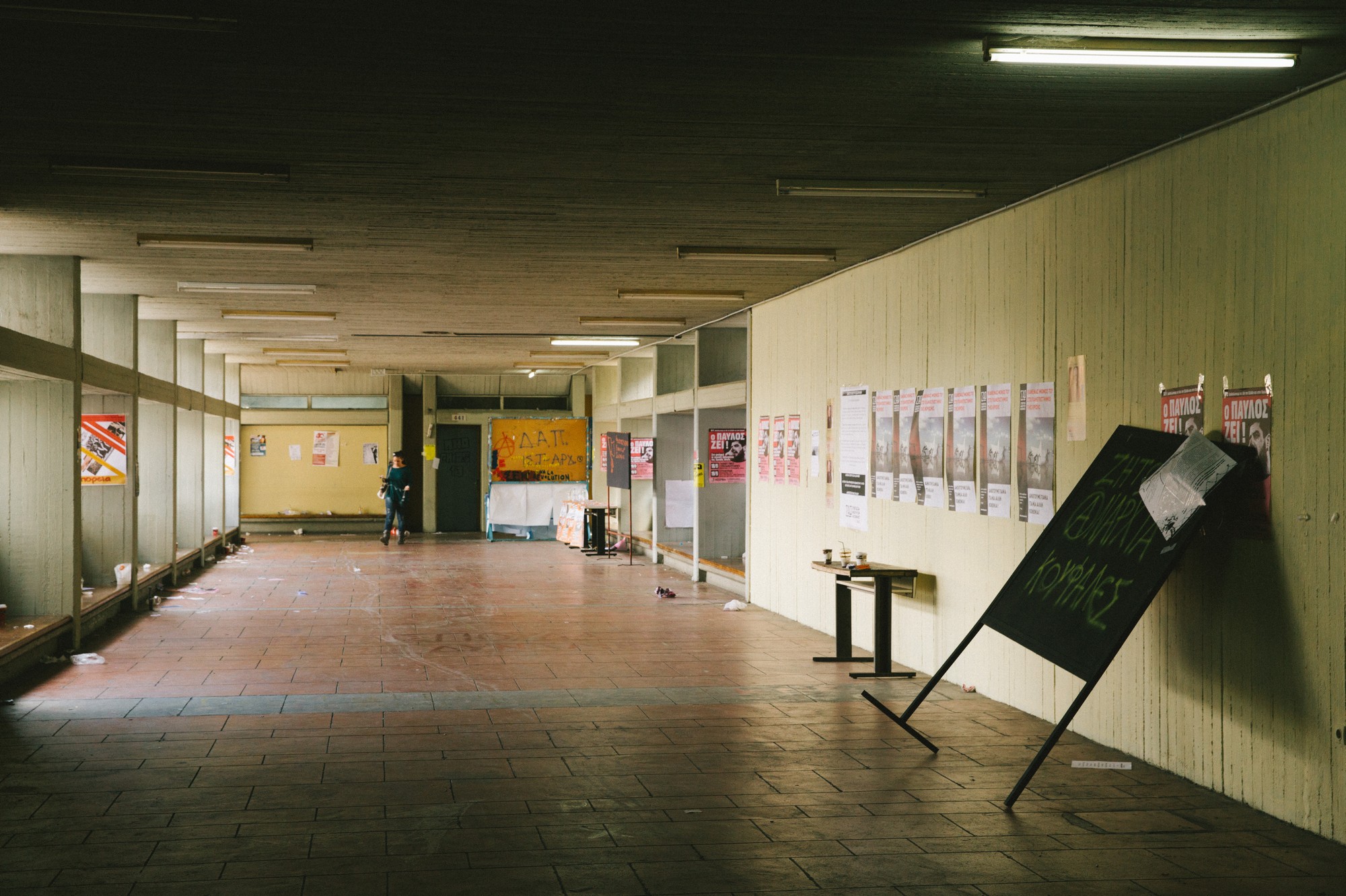 Τη στιγμή που τελειώνει η κουβέντα μου με τα κορίτσια, αναζητώ στον χώρο τον Γιάννη και την φωτογραφική του μηχανή. Τον βρήκα στην Κοσμητεία, όπου φρόντισαν να μας κάνουν υποδείξεις για το ότι δεν επιτρέπονται οι λήψεις εντός του -δημοσίου παρεμπιπτόντως- χώρου της φιλοσοφικής, χωρίς την άδειά τους. Ζήτησαν να δουν το υλικό μας και στην ερώτηση μας για το αν ελέγχουν και τα κινητά των φοιτητών που γεμίζουν καθημερινά με φωτογραφίες το instagram και το facebook, δεν υπήρξε ποτέ απάντηση. Τελικά μας άφησαν να συνεχίσουμε το ρεπορτάζ υπό την συνοδεία ενός επιστάτη που φοβόταν ότι θα βρει τον μπελά του και μάλιστα όχι από την Κοσμήτορα, αλλά από τους φοιτητές, αν φωτογραφίζαμε τις αφίσες τους.