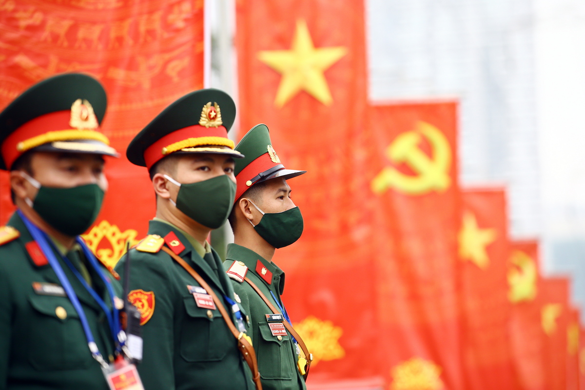 epaselect epa08967709 Vietnamese soldiers stand guard outside National Convention Center during the 13th National Congress of Vietnam's Communist Party (VCP), in Hanoi, Vietnam, 27 January 2021. The VCP's 13th congress, which runs from 25 January through 02 February at the National Convention Center in Hanoi, will choose the party's new leadership. EPA/LUONG THAI LINH