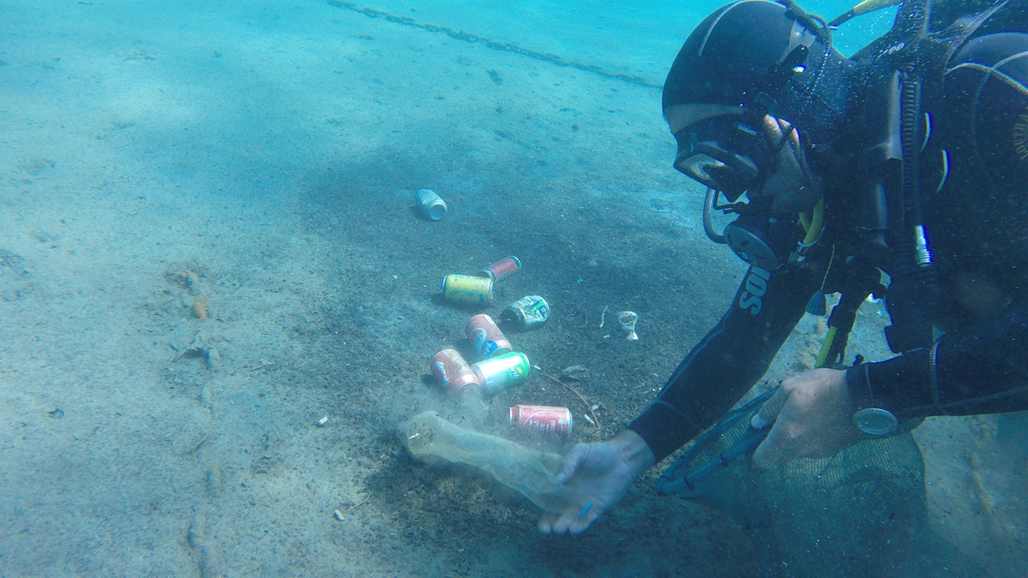 Η ομάδα έχει καθαρίσει τον βυθό από 44 τόνους στερεών αποβλήτων μέχρι σήμερα.