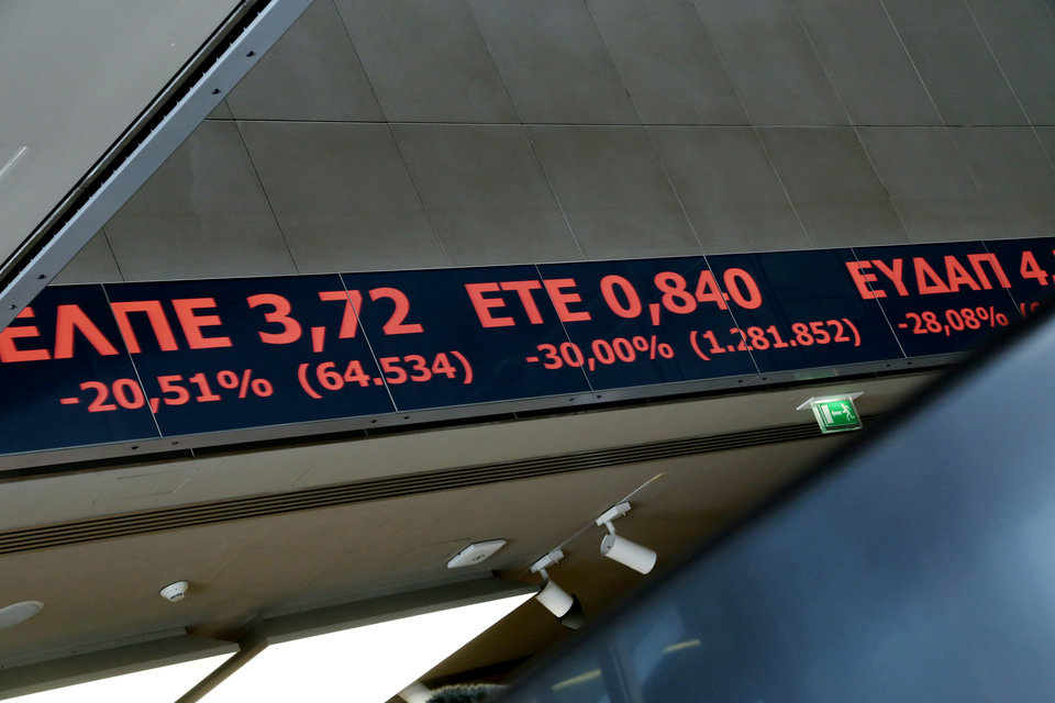 Στιγμιότυπο από την πρώτη συνεδρίαση του Χρηματιστηρίου Αθηνών, κατόπιν του ανοίγματός του μετά την επιβολή των capital controls. 3.8.2015.