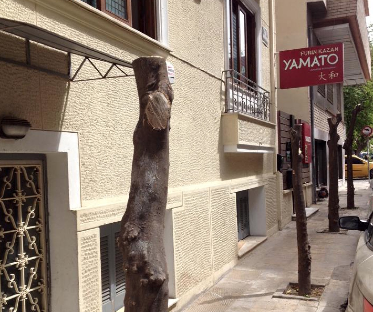 Το πεζοδρόμιο του αριθμού 21 της οδού Αλκιμάχου στο Παγκράτι, όπου βρίσκεται και το ασιατικό εστιατόριο Yamato, στόλιζαν μέχρι πρότινος τέσσερις ολάνθιστες νεραντζιές, από τις αναρίθμητες που ξεφυτρώνουν με θράσος μέσα στο τσιμέντο ανά την Αθήνα. Την Τετάρτη που μας πέρασε ωστόσο, 13 Απριλίου, οι κάτοικοι της οδού ξύπνησαν μπροστά σε ένα ιδιαίτερα στενάχωρο θέαμα. Οι νεραντζιές είχαν κοπεί και πλέον τρία «κούτσουρα» στέκονται παραταγμένα έξω από το εστιατόριο. Η Μάρω Γρηγοριάδη που διαμένει ακριβώς απέναντι από το εστιατόριο, εξοργισμένη από το θέαμα με σχετική ανάρτησή της στο facebook κοινοποίησε το ζήτημα και προέτρεψε όλους σε μποϊκοτάρισμα της επιχείρησης. Η ανάρτησή της έγινε viral, με αποτέλεσμα να ασχοληθούν μέχρι και τα μέσα.
