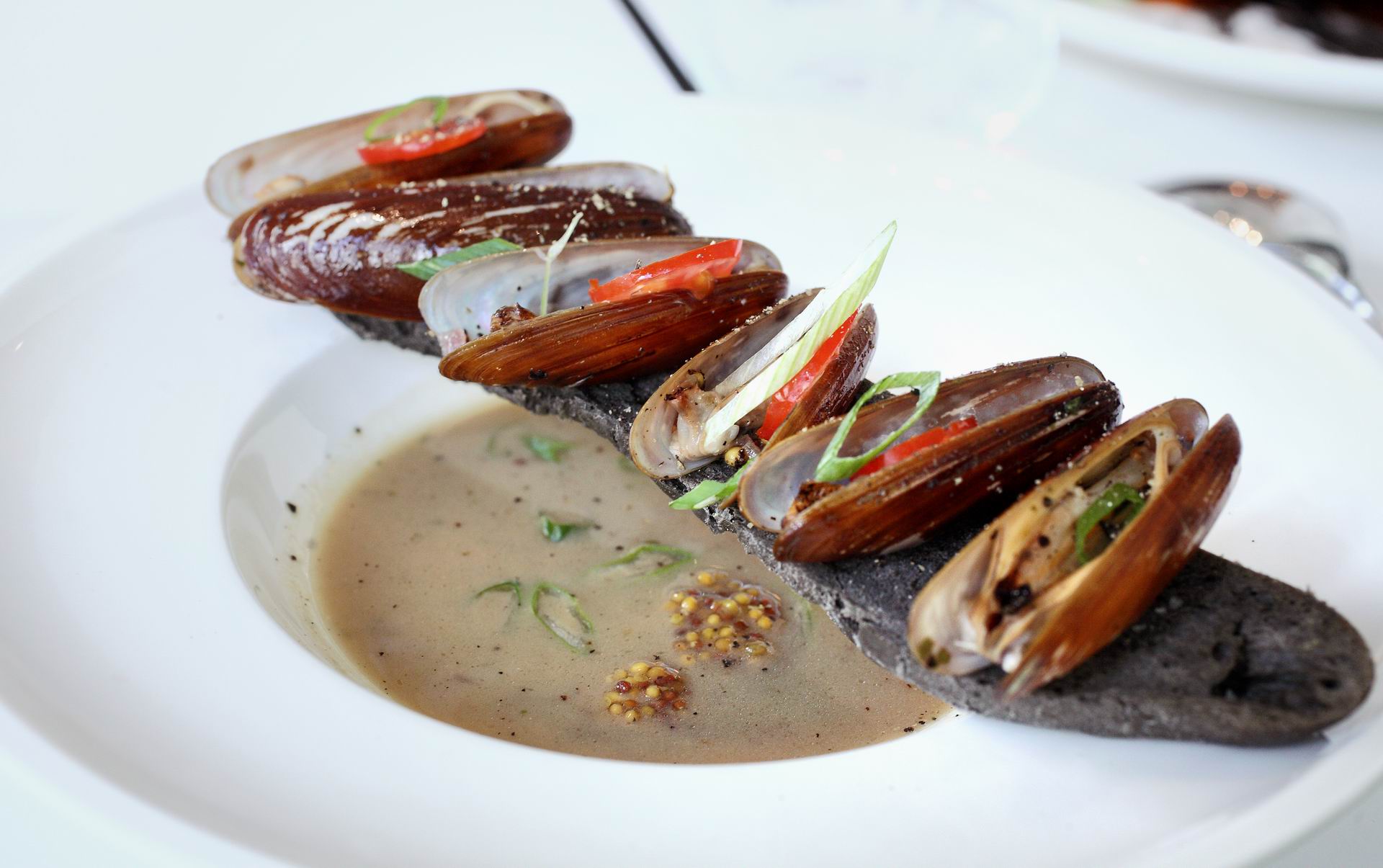 Όστρακα με sauce σαμπάνιας, αρωματικό βούτυρο και χαβιάρι μουστάρδας