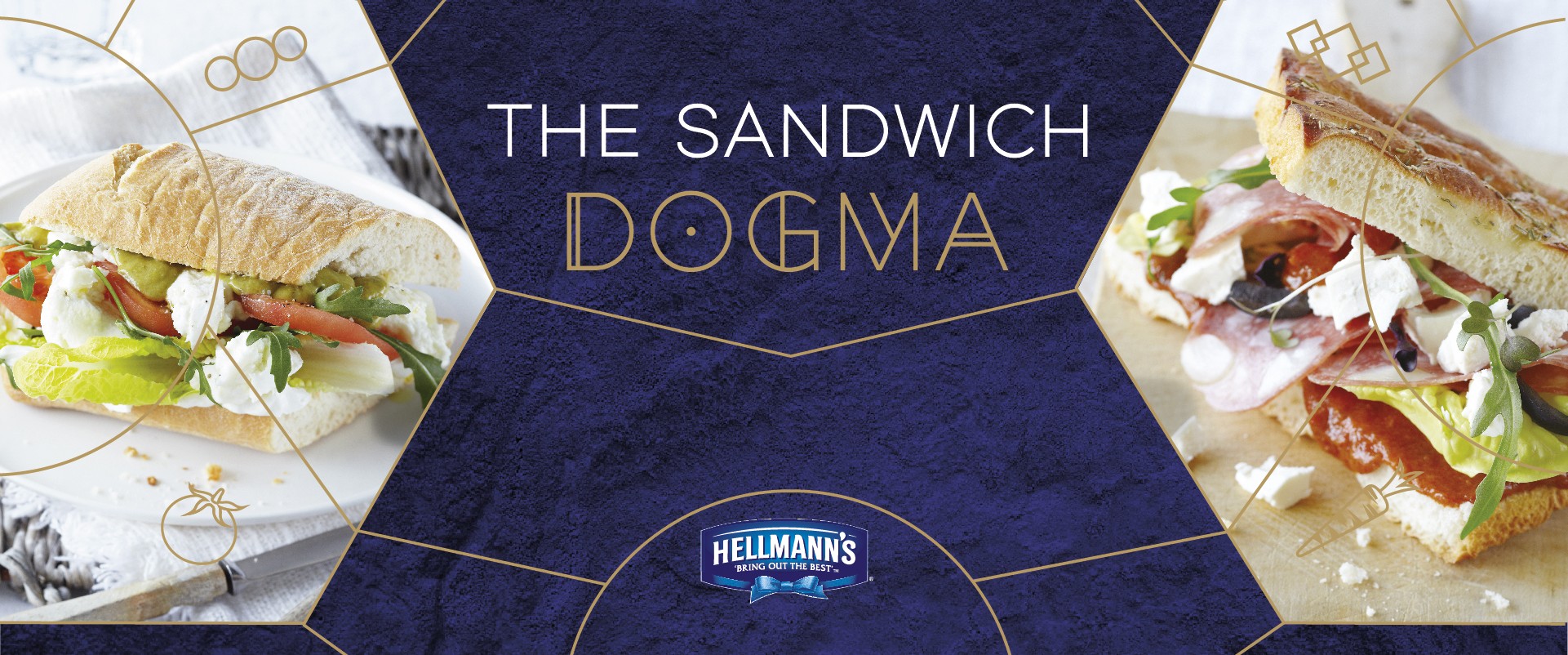 Το Hellmann’s Sandwich Dogma είναι μια νέα ολοκληρωμένη γευστική εμπειρία που ξεκινάει από τις πρώτες ύλες που αποτελούν την βάση για μια σειρά εξαιρετικών dressings, New York sauces και cream cheese.Σε συνδυασμό με τις ευφάνταστες προτάσεις των chefs της Hellmann’s για sandwiches και burgers απογειώνει αυτό το κατά τα άλλα απλό καθημερινό σνακ μετατρέποντας την απόλαυσή του σε μία πραγματική τελετουργία.