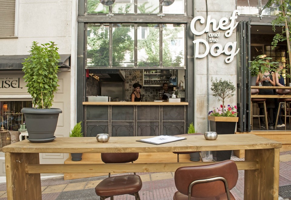 Φτάνω στο μικρό αλλά προσεγμένο χώρο του Chef and The Dog, στη Λουκιανού, νωρίς το απόγευμα της Πέμπτης. Το τηλέφωνο για παραγγελίες χτυπά σαν τρελό ενώ δυο κυρίες στο διπλανό τραπέζι παλεύουν να φάνε με το μαχαιροπίρουνα το hot dogs κάνοντας με αυτομάτως να αποφασίσω ότι εγώ θα επιλέξω να το φάω με τα χέρια γιατί εδώ που τα λέμε η μισή απόλαυση του να τρως street food βρίσκεται σε αυτήν ακριβώς την απλότητα της διαδικασίας.