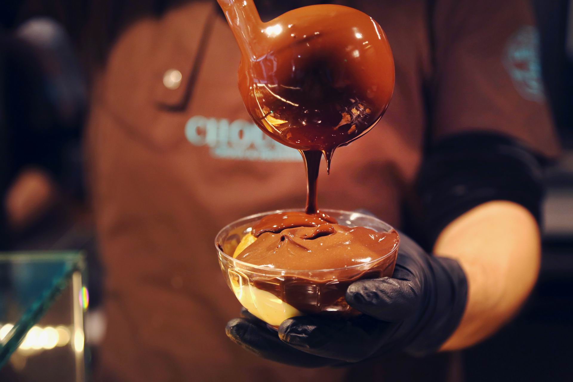 Οι γεύσεις σοκολάτας που προσφέρει το Choureal είναι γάλακτος, bitter και έξτρα bitter, λευκή, πραλίνα, καραμέλα, όλες τους εξαιρετικές. Διαθέτει επίσης μια πολύ ιδιαίτερη με γλυκόριζα και μια εκπληκτική ζεστή σοκολάτα που πρέπει να καταναλωθεί αμέσως. Υπάρχει πάντα και μια γεύση εποχής (αυτή την περίοδο είναι σοκολάτα με μανταρίνι). Όσο για τις γαρνιτούρες, οι επιλογές είναι πολλές, από φρέσκα φρούτα μέχρι μπισκότο που επίσης φτιάχνεται εκεί.