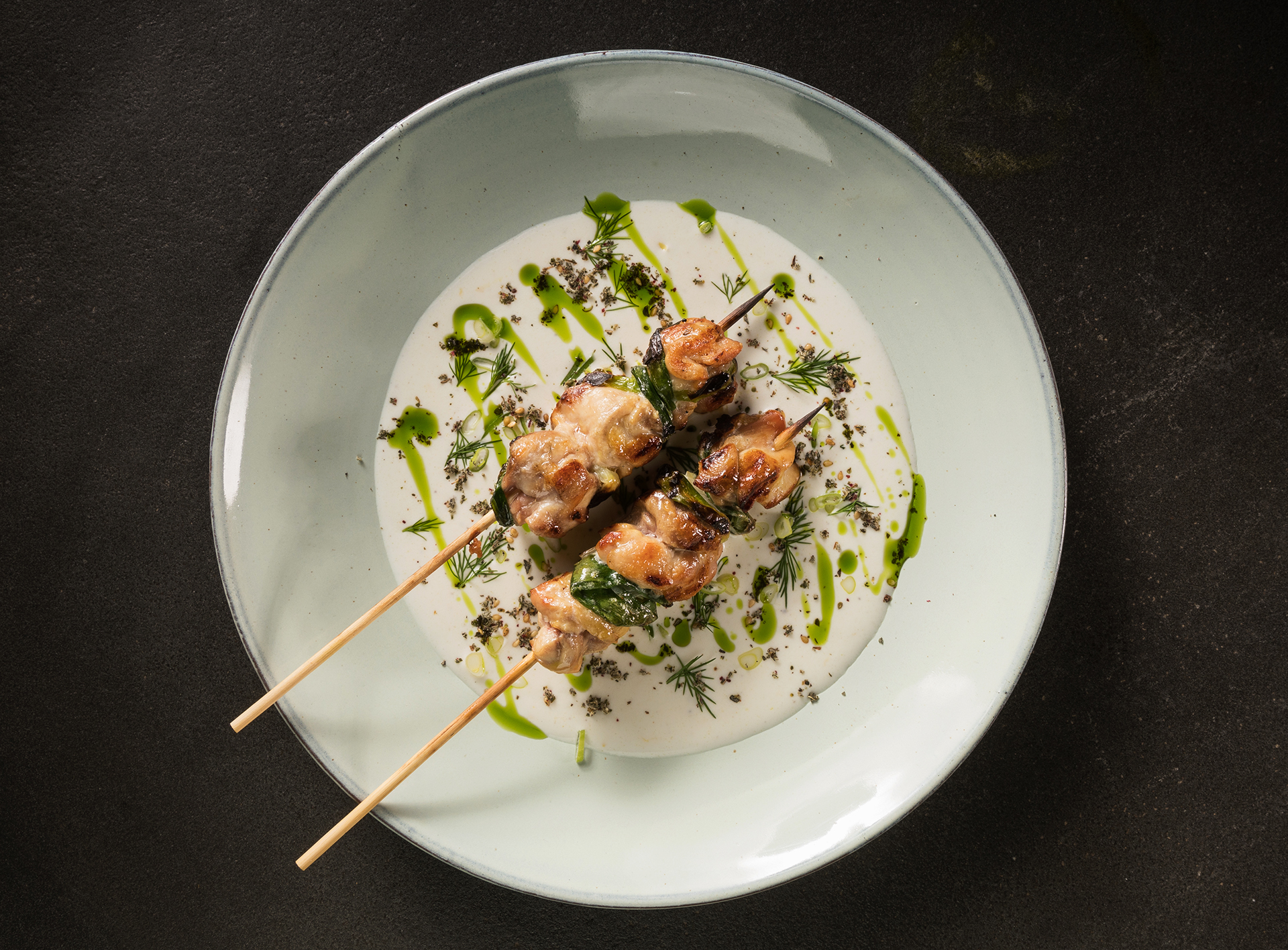Σουβλάκι κοτόπουλο με τζατζίκι, μαύρο ρύζι και μυρωδικά