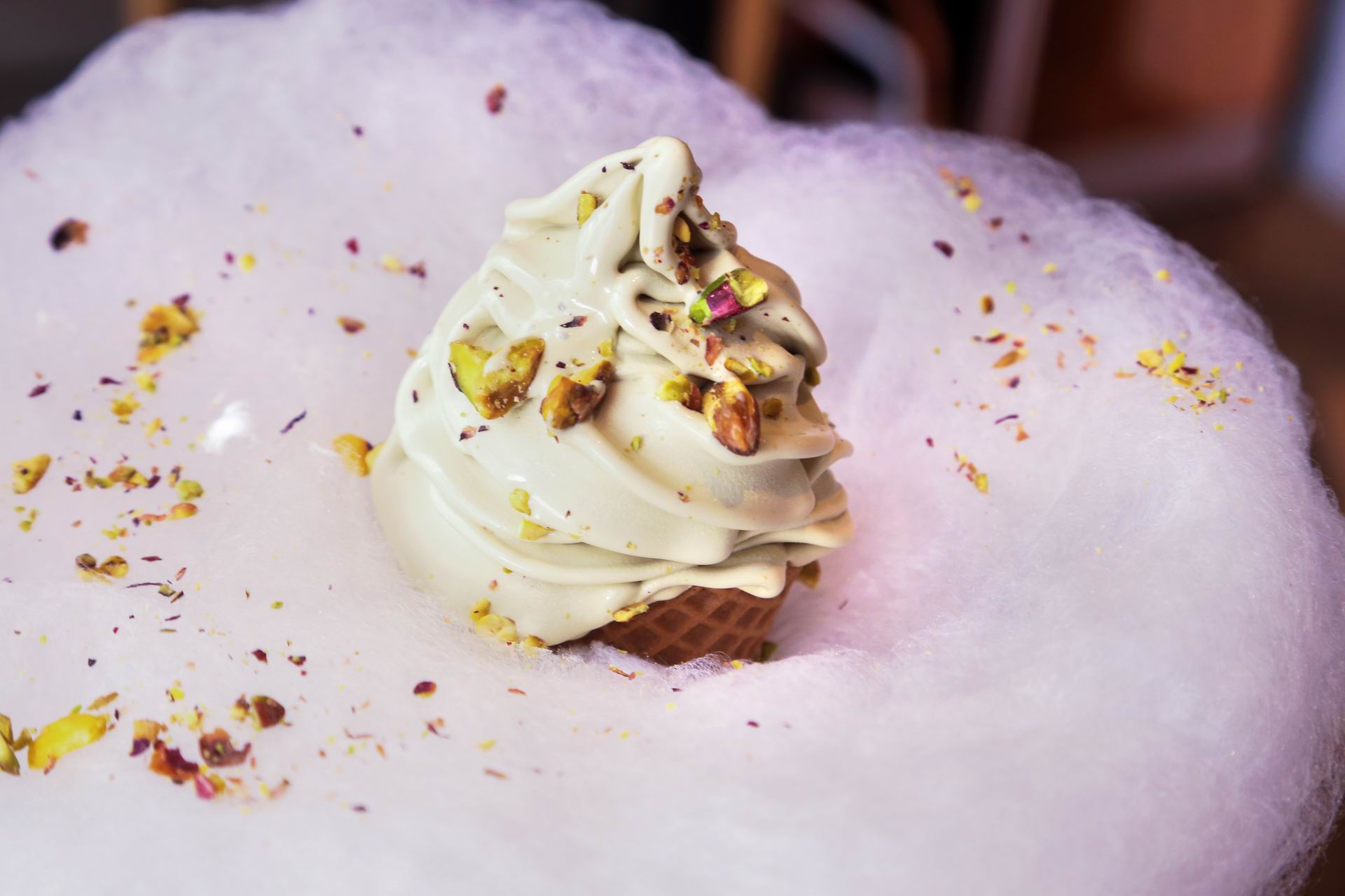 Τα πρώτα δείγματα που μας έδωσε είναι ένα δροσερό ανθόγαλο, ένα εκπληκτικό και γεμάτο γεύση φιστίκι, μία vegan μαύρη σοκολάτα προορισμένη για να αγαπηθεί από τους γλυκατζήδες (vegan και μη) και το τριαντάφυλλο με τη δυνατή επίγευση. Κάθε μία από αυτές τις γεύσεις μπορείτε να τη συνοδεύσετε με cotton candy και χειροποίητα toppings (όπως το καραμελωμένο pop corn) που ίσως σας ξυπνήσουν κι εσάς παιδικές αναμνήσεις.