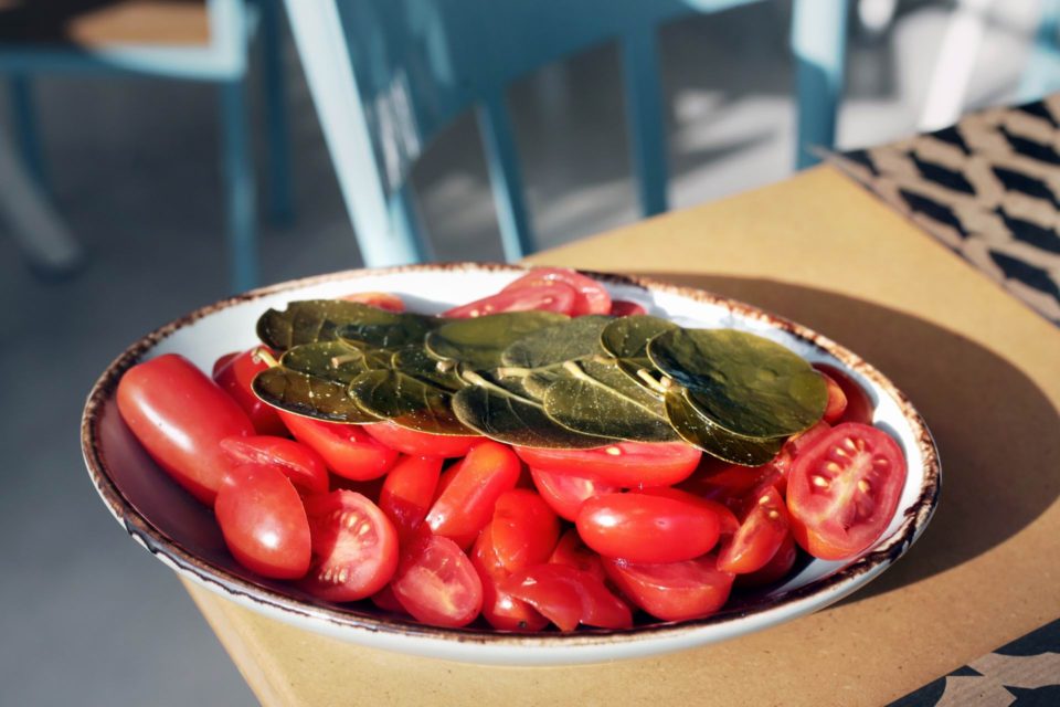 Σαλάτα τοματίνια με καπαρόφυλλα.