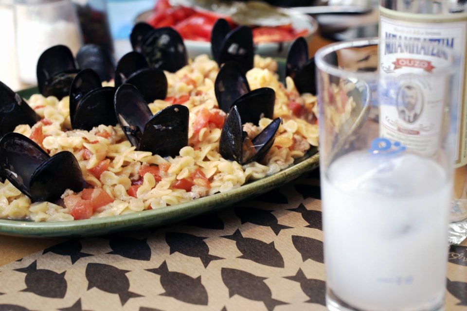 Φαρφαλίνες με σαλσίτσια και μύδια.