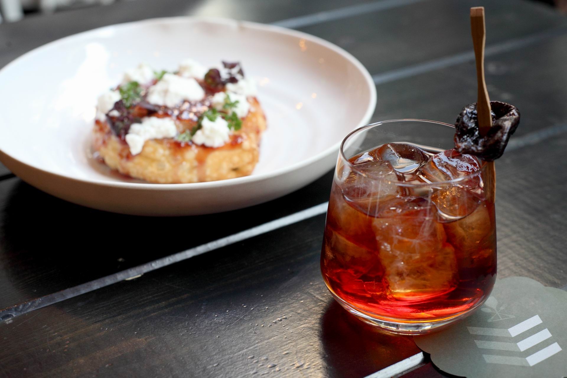 Τον συνδυασμό φαγητού-ποτού που απογειώνει τη γευστική εμπειρία στο feedέλ τη δοκιμάσαμε αρχικά με την απίθανα τρυφερή στριφτή τυρόπιτα του με λαχανικά εποχής, νιβατό, chutney βατόμουρο-ούζο (8 €) που συνοδεύτηκε άψογα με το φινετσάτο Grandma ‘s Negroni (Tanqueray 10 infuse with Florida pepper, vermouths, bitter, spices, 9 €) και αμέσως μετά με την ζουμερή πανσέτα με γλυκοπατάτα, τηγανητό κρεμμύδι και πετιμέζι (11,5 €) η λιπαρότητα της οποίας καταλάγιασε χάρη στο εξαιρετικό The Jamaican Bee (Rum Blend, Metaxa 5* y.o, pear, honey comb, 9 €).