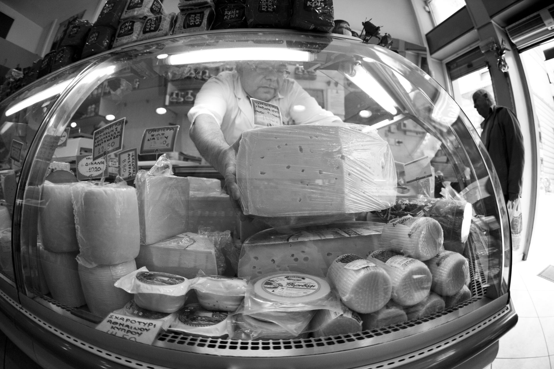 Στο λιμάνι του Πειραιά, τα παντοπωλεία της οδού Αριστείδου κλείνουν το ένα μετά το άλλο. Μόνο στο νούμερο 25, βρήκα ζωή και κάποια πελατεία, στο παλιό τυροπωλείο της Χήρας που πουλά εδώ και 60 χρόνια την πιο ωραία φέτα της Αθήνας –μία βουτυράτη φέτα-φετίχ που αξίζει να την δοκιμάσεις ακόμη κι αν βρίσκεσαι στην άλλη μεριά της γης.