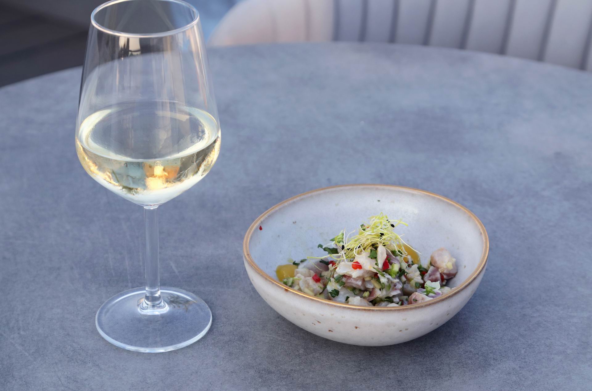 Ceviche τσιπούρας με μάνγκο και λάδι κόλιανδρου.