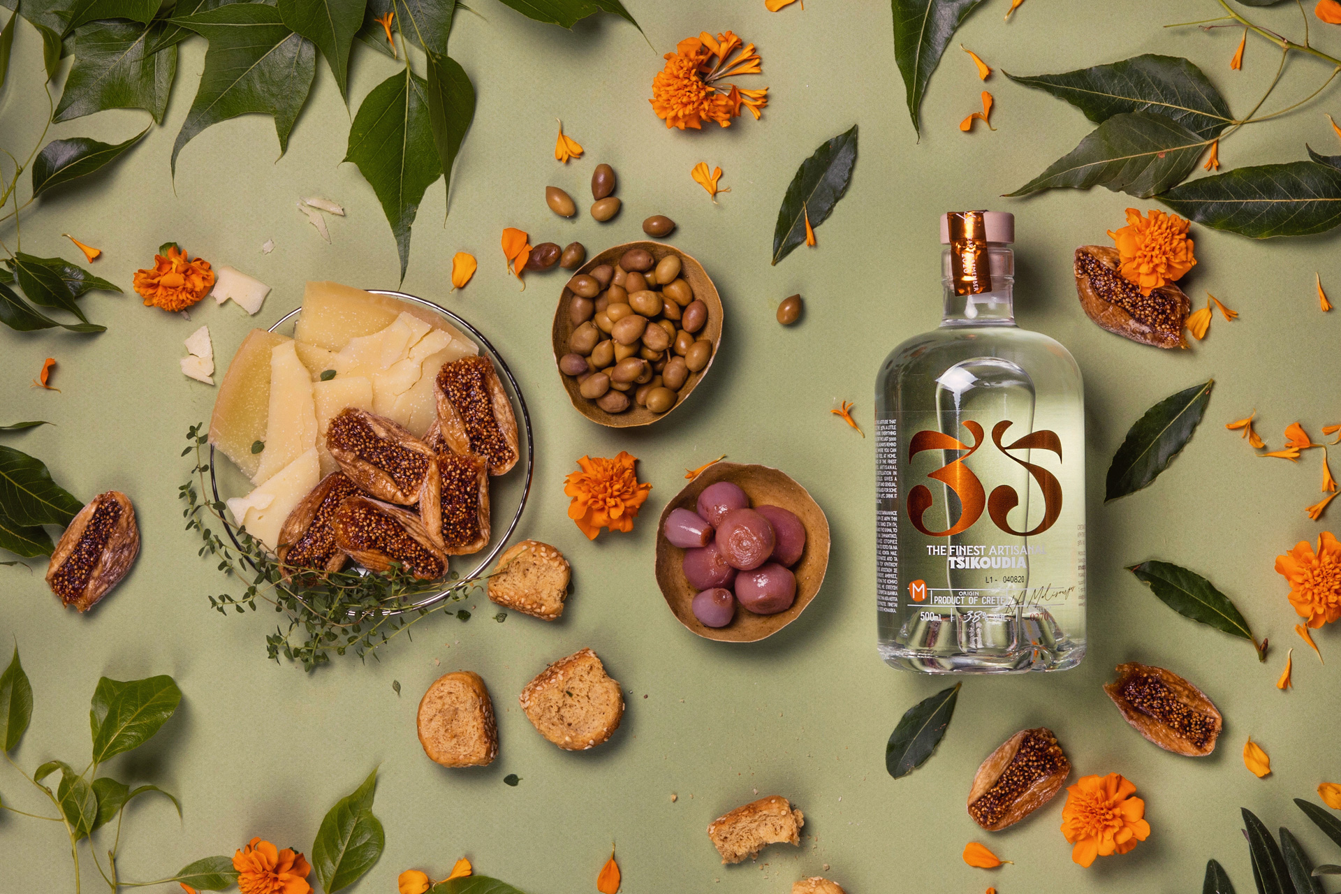 Η τσικουδιά 35Ν δεν είναι απλά ένα όνομα, είναι ένας τρόπος να εξερευνήσουμε την Κρήτη, είναι το προϊόν μιας παρέας τριών φίλων που μετρά σήμερα 35 χρόνια φιλίας. Εδώ και περίπου 20 χρόνια ο ένας από αυτούς, ο Ηλίας, μαθαίνει και πειραματίζεται με αποστάξεις για να φτιάξει την καλύτερη τσικουδιά, άξια της ιστορίας της, άξια του τόπου της. Η 35Ν φτιάχτηκε πρώτα για τους ίδιους, να την πίνουν με την οικογένεια και τους φίλους τους. Η διαδρομή όλα αυτά τα χρόνια είχε από όλα, επιτυχίες, απογοητεύσεις, ταξίδια σε οινικούς προορισμούς, διάβασμα, κούραση, αλλά κυρίως ωραίες παρέες και όλα αυτά τα χρωστούν στην τσικουδιά. Όταν το 2019 οι τρεις τους αποφάσισαν να ξεκινήσουν το νέο επαγγελματικό τους βήμα, η Μαργαρίτα Γουργουρίνη και ο Μιχάλης Αγγελακόπουλος της Foodwill βρέθηκαν από την πρώτη στιγμή δίπλα στην αρχική ομάδα. Η Μαργαρίτα οργάνωσε και καθοδήγησε τα πρώτα βήματά τους και ο Μιχάλης ανέλαβε τον εξαιρετικό σχεδιασμό της συσκευασίας. Ακόμα και το όνομα είναι ξεχωριστό. 35North είναι ο 35ος παράλληλος που διασχίζει την Κρήτη από το ένα άκρο της στο άλλο, από τη Φαλάσαρνα μέχρι τη Ζάκρο και ορίζει τη θέση του νησιού πάνω στη Γη, διαμορφώνοντας έτσι το κλίμα της που, μαζί με το ανάγλυφο του νησιού, κάνει τόσο μοναδικό τον κρητικό αμπελώνα.