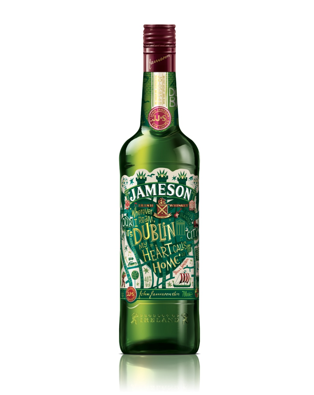 Η φράση “Wherever I roam, it’s Dublin my heart calls home”, που στα ελληνικά σημαίνει “Όπου και αν περιπλανιέμαι, η καρδιά μου νιώθει σπίτι μόνο το Δουβλίνο”, βρίσκεται σε περίοπτη θέση στο κέντρο της ετικέτας, περιγράφοντας το έντονο συναισθηματικό δέσιμο της πόλης του Δουβλίνου με τους ανθρώπους της. Το αποτέλεσμα είναι ένα περιορισμένης έκδοσης μπουκάλι-σύμβολο με ξεχωριστή εμφάνιση που ισορροπεί τη σύγχρονη προσωπικότητα του Jameson με την πλούσια κληρονομιά της πόλης. Το Jameson γιορτάζει την ημέρα του Αγίου Πατρικίου με μια Νέα Συλλεκτική Φιάλη Ο Daniel Lundberg, Global Brand Director του Jameson, δήλωσε σχετικά: «Το Jameson είναι συνώνυμο με τη γενέτειρά του, το Δουβλίνο. Τόσο το Jameson όσο και το Δουβλίνο διαθέτουν πλούσια κληρονομιά και φιλόξενες προσωπικότητες, ενώ αποτελούν ηγέτες στη σύγχρονη τέχνη. Η συγκεκριμένη συλλεκτική έκδοση αποτελεί το δικό μας φόρο τιμής σε αυτή τη μεγάλη πόλη».