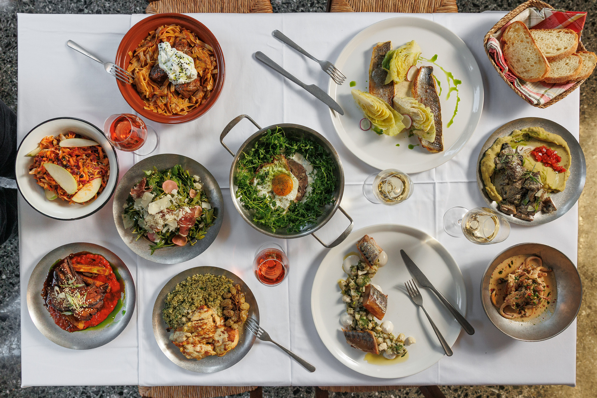 Ποιο ήταν το κόνσεπτ όταν το ανέλαβαν; Ένα οινορεστοράν με μια πολύ ενημερωμένη λίστα φυσικών κρασιών, ως επί τω πλείστον ελληνικών, συνταγές παραδοσιακές και μαγειρέματα φτιαγμένα στον ξυλόφουρνο, στη γάστρα ή στη σούβλα. Πιάτα δημιουργικά που ανασύρουν μνήμες του παρελθόντος. Και πράγματι, σε αυτόν τον χώρο αποτυπώνεται η ουσία της αγοράς: το αντάμωμα ανθρώπων, γεύσεων και ιστοριών. Αλλά και μουσικής, αφού η εμπειρία ξεκινά με το hi-end ηχοσύστημα που αναπαράγει μουσική αποκλειστικά από βινύλια, επιλεγμένα από γνωστούς DJs.