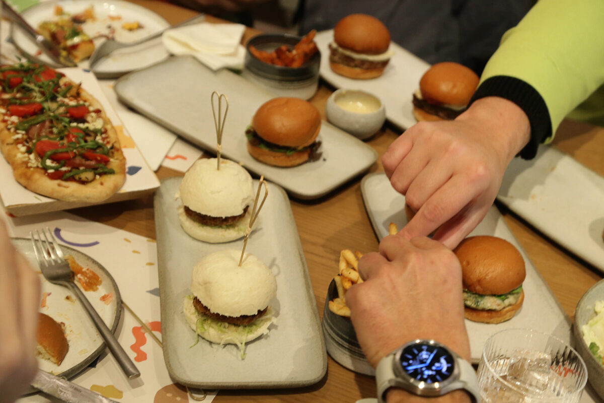 Αυτό νιώσαμε και εμείς από τη στιγμή που μπήκαμε στο burger lounge στην οδό Βουλής. Κοιτάζοντας το μενού είδαμε κάποιες επιλογές σε patties που δεν συναντάμε συχνά σε burger places και ζητήσαμε από τον σεφ, τον Χάρη Ζευγούλη, να μας πει πόσο δημοφιλή είναι αυτά τα ιδιαίτερα burgers με σολομό ή μπακαλιάρο. Η απάντησή του ήταν ότι θα εκπλαγούμε μάλλον, γιατί οι θαμώνες δοκιμάζουν με μεγαλύτερη ευκολία από όσο πιστεύουμε αυτές τις μοναδικές επιλογές που προσφέρει το μενού. Το bao bun με φρέσκο, τραγανό σολομό, ιαπωνική BBQ σάλτσα, kimchi μαγιονέζα και αβοκάντο ή το slider με φρέσκο μπακαλιάρο, ταρτάρ σος, ντομάτα και μαρούλι είναι όντως ανάμεσα στα best sellers του μενού.