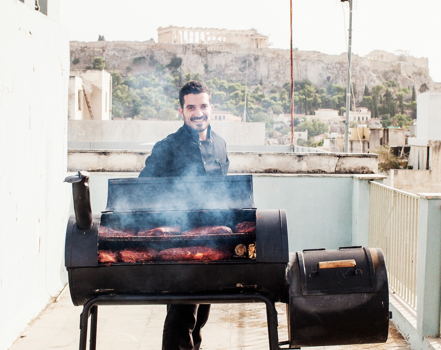 Στην πραγματικότητα, η πρώτη δοκιμή κατασκευής του πρώτου smoker για επαγγελματική χρήση στην Ελλάδα για αυθεντικό barbeque έγινε στην ταράτσα του Mama Roux, στην οδό Αιόλου.