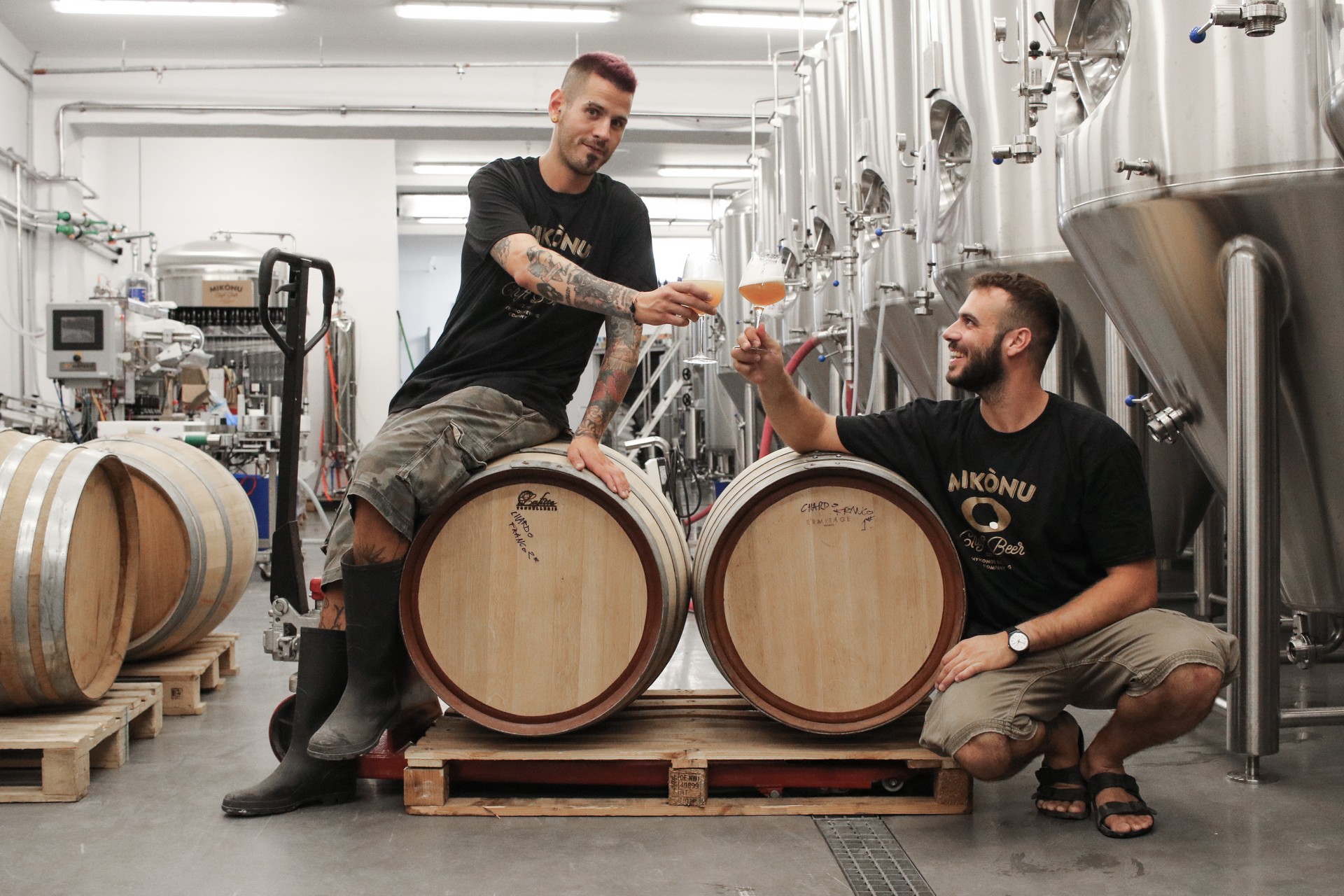 Mikònu Barrel Aged beers 2017: Τον Μάρτιο του ’17 πειραματιστήκαμε με δύο αρκετά διαφορετικά βαρέλια από διαφορετικούς τύπους κρασιού. Ζυμώσαμε μια μπύρα τύπου Belgian Ale στις δεξαμενές μας και έπειτα τη μεταγγίσαμε σε δύο είδη βαρελιών όπου ωρίμασε για 6 μήνες. Το ένα βαρέλι ήταν γαλλική οξιά που φιλοξενούσε παλαιότερα Chardonnay και το άλλο ήταν γαλλικής ακακίας και φιλοξενούσα Αγιωργίτικο. Τα αποτελέσματα ήταν πολύ ενδιαφέροντα. Η παλαιωμένη μπίρα από το βαρέλι Chardonnay ήταν αρκετά πιο πολύπλοκη και αρκετά διαφορετική στις τρεις διαστάσεις (μύτη, στόμα, επίγευση) ενώ η μπίρα από το βαρέλι Αγιωργίτικου, ήταν αρκετά πιο «σοβαρή» και ισορροπημένη.