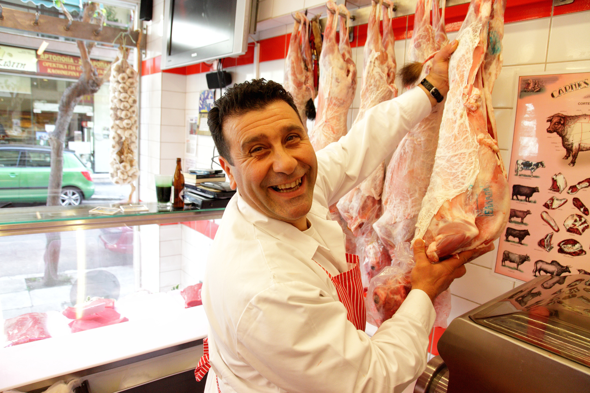 Το χρηματιστήριο του κρέατος. «Η δύναμη ενός κρεοπωλείου είναι το χοιρινό, το μοσχάρι και το κοτόπουλο. Αρνιά και κατσίκια πάντα παίρνει ο κόσμος, την Μεγάλη Εβδομάδα όμως το πράγμα απογειώνεται. Εμείς προσπαθούμε να έχουμε στο μαγαζί μια ποικιλία με πολλά διαφορετικά κρέατα που θα κεντρίσουν το ενδιαφέρον του πελάτη. Δε μπορώ να είμαι όλη την ώρα με χοιρινό ή κοτόπουλο. Θα του φτιάξω χοιρινό ρολό γεμιστό, θα κάνω τα μπιφτέκια μόνος μου βάζοντας πιπεριές και διάφορα άλλα πράγματα, που και που φέρνω Black Angus ή μοσχάρι Αργεντινής κι Αυστραλίας που μου ζητούν διάφορα μαγαζιά. Πάντα προσπαθώ να έχω μια διαφορετική πρόταση για τον καταναλωτή. Σε ένα τραπέζι στο σπίτι μου σίγουρα θα έχω κάποιες μπριζόλες από τέτοιο ζουμερό κρέας γιατί αν δεν τις δοκιμάσουν από τον χασάπη από ποιον θα το κάνουν;»