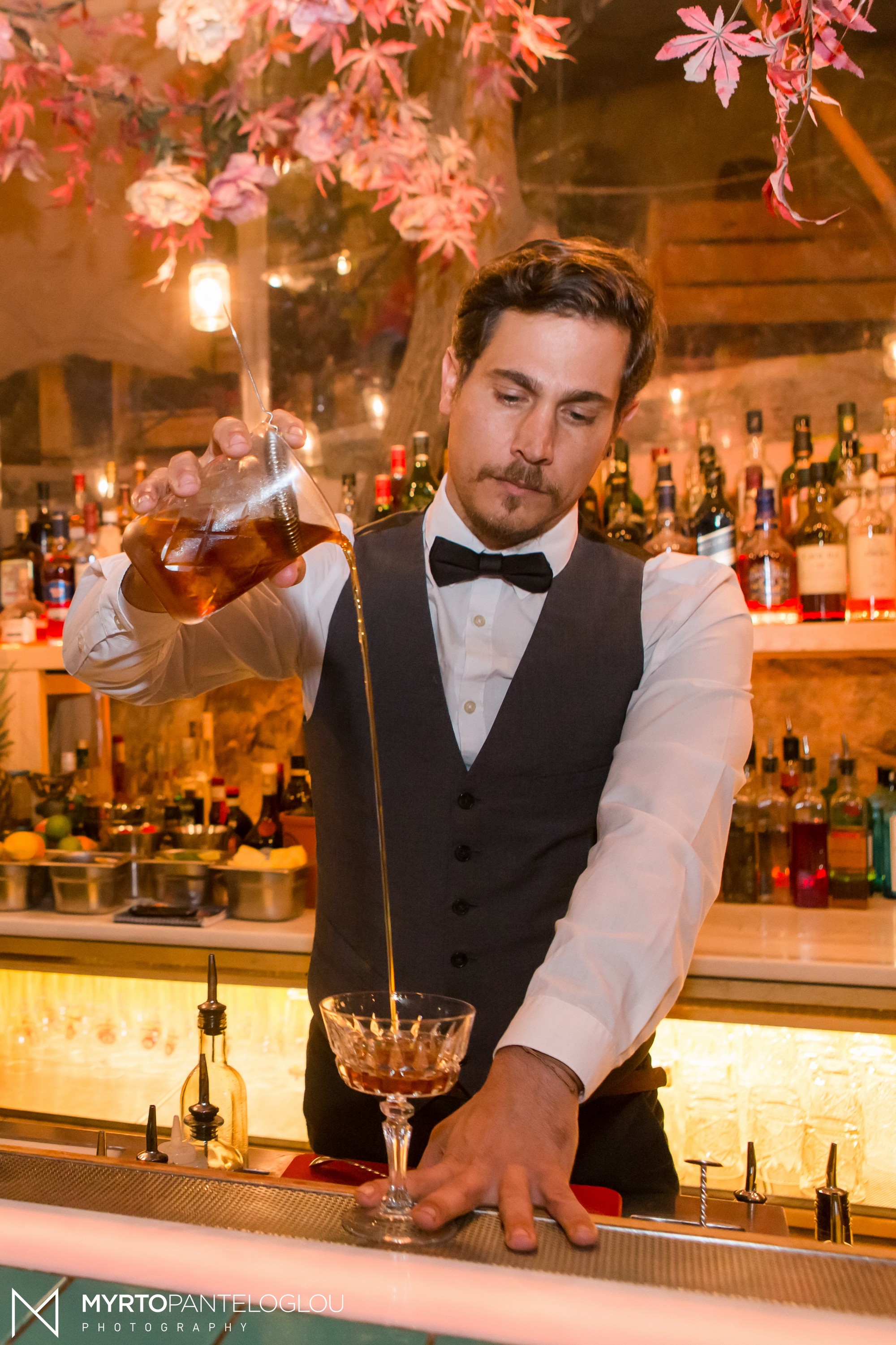 Η παιδικότητα και η σπιρτάδα στο βλέμμα του όταν μιλάει για τη δουλειά του ξεγελάνε και δε σε βοηθάνε να εξακριβώσεις τα τριάντα εννέα χρόνια που κουβαλάει στην πλάτη του πόσο μάλλον τα είκοσι εκ των οποίων τα έχει περάσει πίσω από τη μπάρα. Σου θυμίζει πιτσιρικά που μόλις έπιασε δουλειά.