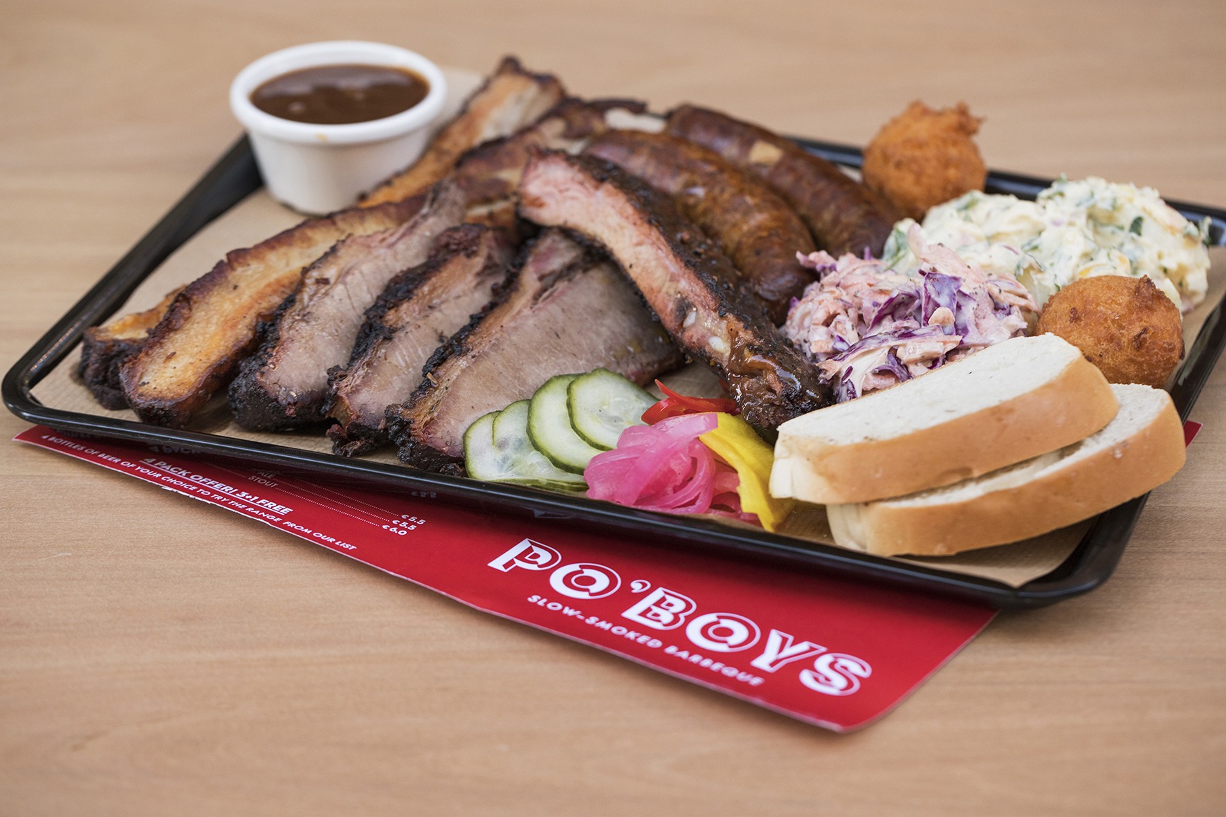 Ο απλός κατάλογος (μόλις ένα φύλλο χαρτί) επιμένει στην χρωματική παλέτα του άσπρου κόκκινου, ακολουθώντας τη μινιμαλιστική λογική που προστάζει χώρο στις γεύσεις κι όχι στις περιττές γραφιστικές τσαχπινιές. Διαβάζοντάς τον προσεχτικά εύκολα καταλαβαίνει κανείς κάποια πράγματα. Πρώτον, εδώ ακολουθούν με ευλάβεια την τάση που θέλει το μοίρασμα των πιάτων. Δεύτερον, οι τιμές είναι κάτι παραπάνω από λογικές, χωρίς αυτό να σημαίνει όμως ότι διαπραγματεύονται επ’ ουδενί το θέμα της ποιότητας. Συμπέρασμα τρίτο και κυριότερο: ένα κομμάτι της Νέας Ορλεάνης έφτασε με κάποιον τρόπο στην Αθήνα. Είτε επιλέξετε το όσο πρέπει spicy homemade λουκάνικο Andouille που φτιάχνουν μόνοι τους στο PΟ’ Boys BBQ είτε τα αριστουργηματικά ψημένα spare ribs (όλα τα παραπάνω συνοδεύονται με πατατοσαλάτα ή τηγανητές πατάτες, πίκλες και γλάσο από bourbon) δε θα απογοητευτείτε. Ιδιαίτερη μνεία θα πρέπει να γίνει και στην βαθιάς νοστιμιάς πανσέτα, την οποία ο σεφ μαρινάρει για ώρες πριν το ψήσιμο σε ένα μείγμα από αλάτι και ζάχαρη (dry curing), ακολουθώντας τα διδάγματα του σπουδαίου David Chang στο νεοϋορκέζικο Momofuku Ssam Bar. Αναμφισβήτητα όμως σταρ του μενού είναι το brisket, το καπνιστό βοδινό στήθος, τρυφερό και ρόδινο, σιγοψημένο στο custom offset smoker τους για ώρες (τουλάχιστον 8, με μια μέση θερμοκρασία γύρω στους 120οC). Το μυστικό της επιτυχίας όμως δεν είναι απλά το να μαγειρευτούν τα κρέατα για μεγάλο χρονικό διάστημα σε σιγανή θερμοκρασία. Έχει σημασία να παρατηρεί κανείς την τροφή σε όλα τα στάδια ψησίματος και να παρεμβαίνει εκεί που χρειάζεται, ώστε να διατηρήσει τη ζουμερή της υφή, αλλά και την υπέροχη, λεπτή καπνιστή γεύση της ταυτόχρονα. Μεγάλο ρόλο παίζει ακόμα και η καύσιμη ύλη του smoker, καθώς ακόμη και η υποψία υγρασίας στα ξύλα δε θα δώσει τον ελαφρύ, μπλε καπνό που απαιτείται και θα μπολιάσει το κρέας με μια δυσάρεστη πικρίλα. Στο PΟ’ Boys BBQ, προκειμένου να πετύχουν αυτό το αποτέλεσμα, χρησιμοποιούν αποκλειστικά ξερή ελληνική οξιά ή δρυ της προηγούμενης χρονιάς από δικό τους έμπιστο προμηθευτή.