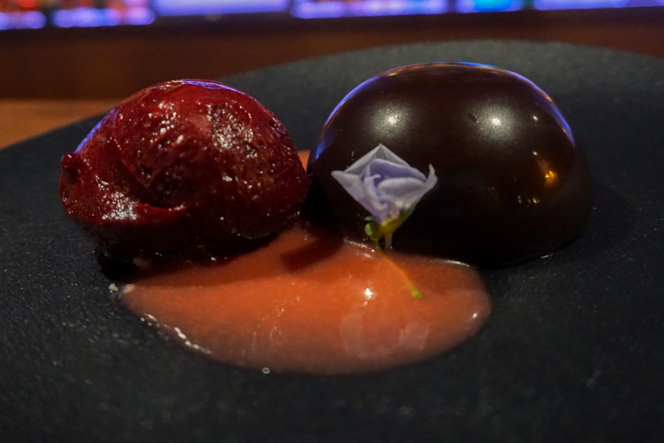 Και γλυκό θα πάρουμε; Φυσικά! Mousse σοκολάτας (10€) με σορμπέ cassis όπως και δήποτε. Και ένα cheesecake (8€) για να σβήσουν όλα γλυκά. Και ένα νεγκρόνι για το τέλος. Μετά τρελός χορός. Φιλάκια!