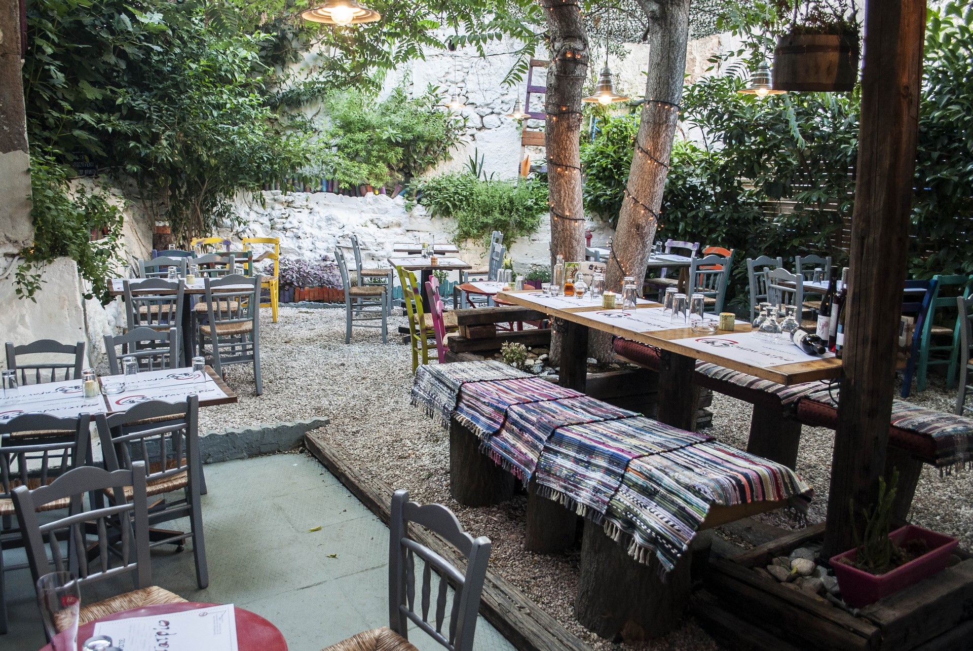 Πίσω από μια τζαμαρία στο δρόμο της Αμβροσίου Φραντζή, ανάμεσα στις γκαραζόπορτες που διαθέτουν τα γειτονικά συνεργεία αυτοκινήτων, σε βιτρίνες μαγαζιών με ανταλλακτικά και αντιπροσωπείες μοτοσυκλετών, ένα εστιατόριο με μπόλικο χρώμα και παιχνίδια ζωγραφισμένα στο χέρι πάνω στα τραπέζια προσφέρει επιλεγμένες γεύσεις από όλη την Ελλάδα και προϊόντα ντόπιων παραγωγών σε μια καλά κρυμμένη αυλή στρωμένη με χαλίκι που καταρρίπτει το κλισέ πως η υψηλή γαστρονομία οφείλει να σερβίρεται σε μικρές δόσεις, απλησίαστες τιμές και «αποστειρωμένους» σε εμφάνιση χώρους.