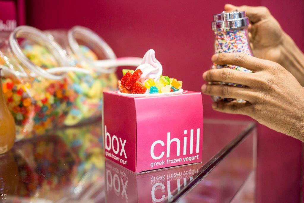 Με 40 μαγαζιά σε όλη την Ελλάδα και άλλα 20 σε διάφορες γωνιές του πλανήτη μας, το chillbox έχει καταφέρει να κάνει το frozen yogurt αγαπημένη λιχουδιά των Ελλήνων, με μια από τις 8 του γεύσεις να ταιριάζει σίγουρα στα γούστα σου. Bανίλια Μαδαγασκάρης, φυσική, φράουλα, μάνγκο, πραλίνα, σοκολάτα, μπανάνα και μπισκότο σε περιμένουν να τους βάλεις τα αγαπημένα σου toppings και να γευτείς τη μοναδική τους γεύση. Φρεσκοκομμένα φρούτα, ξηροί καρποί, δημητριακά και μπάρες από super σπόρους, λαχταριστά μπισκότα, ρευστές σοκολάτες, πραλίνες, σπιτικά γλυκά κουταλιού, τρούφες, γκοφρέτες, πουράκια, χρωματιστά καραμελάκια, μέχρι και καραμέλες. Όλα αυτά περιμένουν να μπουν πάνω από το frozen yogurt της επιλογής σου και να χαρίσουν λίγη παραπάνω δροσιά στο καλοκαίρι σου.