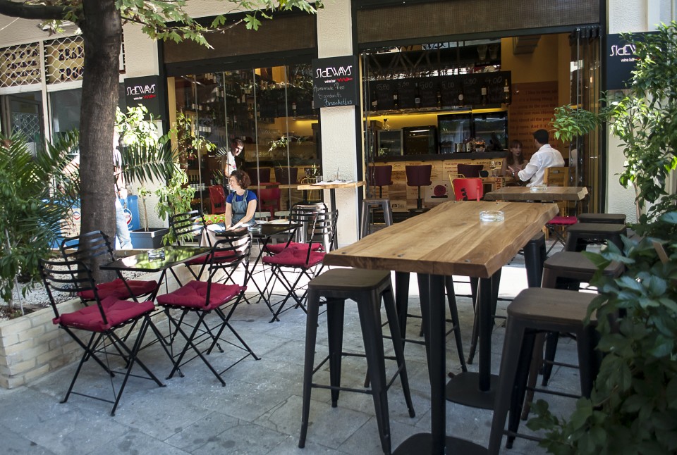Το wine bar Sideways άνοιξε αρχές καλοκαιριού, μέσα στον πυρετό του δημοψηφίσματος και των capital controls για να ποτίσει τις νύχτες μας με καλό, ελληνικό κρασί. Τους πρώτους μήνες το ανακάλυψαν οι τουρίστες, βρίσκεται άλλωστε σε πέρασμα αφού είναι στα όρια Συντάγματος και Πλάκας, αν και δεν θυμίζει τίποτα από τα φολκλόρ, κακόγουστα μαγαζιά που προσπαθούν να ψαρέψουν τους ξένους με ενοχλητικούς κράχτες. Αντιθέτως, το Sideways είναι ένας κομψός χώρος που κατάφερε να συστήσει περίπου 80 ελληνικές ετικέτες και να διαφημίσει το ντόπιο κρασί με τον καλύτερο τρόπο. Με τον ερχομό του Σεπτέμβρη οι εργαζόμενοι των γύρω γραφείων το ανακάλυψαν και έρχονται στο διάλειμμα τους ή μετά τη δουλειά για να πιουν και να τσιμπήσουν κάτι συνοδεύοντας το κρασί τους. Το έχουν ανακαλύψει και οι μαθητές της σχολής Χιλλ που μετά το σχόλασμα περνούν από εκεί και ζητούν χυμούς, μου λέει γελώντας ο Δημήτρης Χαραλάς που επιμελείται τον χώρο και είναι ο ίδιος άνθρωπος που βρίσκεται πίσω από το Rosebud από το 2000.