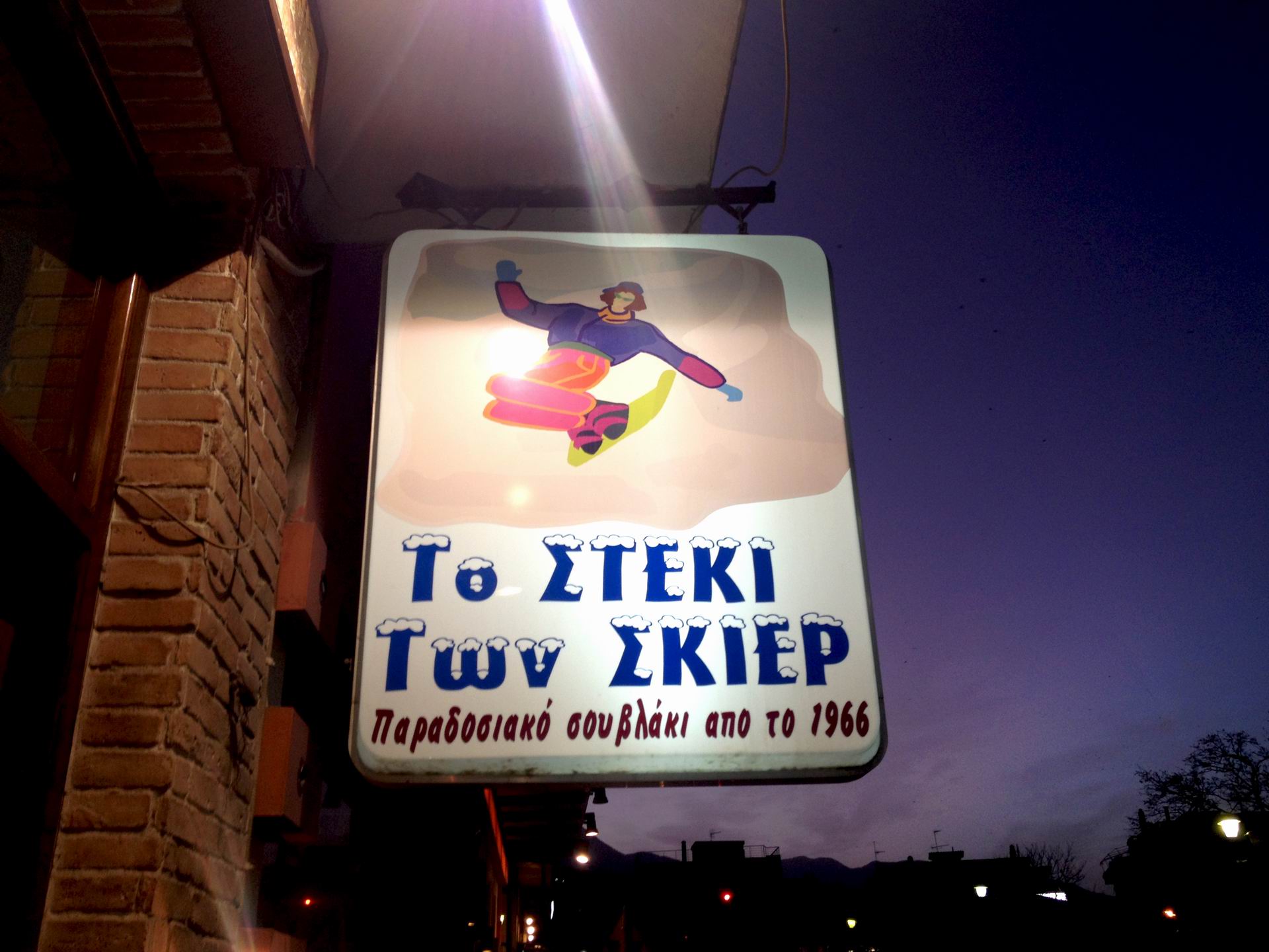 Προφανώς, όταν ξεκίνησε να λειτουργεί σαν σουβλατζίδικο θα είχε άλλο όνομα από αυτό που έχει τα τελευταία χρόνια γιατί ο Παρνασσός τότε ήταν απλώς ένα βουνό. Το 1975 ξεκίνησαν τα πρώτα έργα για την κατασκευή του χιονοδρομικού κέντρου ενώ το “Στέκι των Σκιέρ”, το εμβληματικό σουβλατζίδικο της Λιβαδειάς, υπάρχει από το 1966.