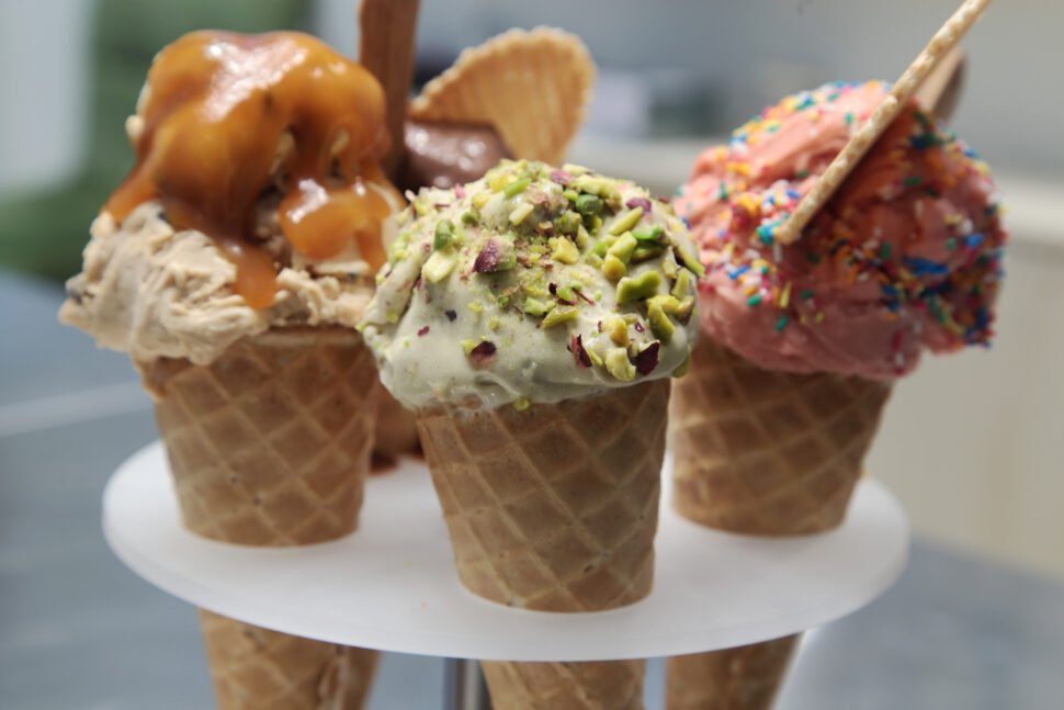 Ο Γρηγόρης Μπογράκος, ο εγκέφαλος πίσω από το πρώτο ελληνικό plant-based και carbon-negative παγωτοπωλείο, με καλωσόρισε και έπιασε κατευθείαν το βλέμμα μου που προσγειώθηκε στο παγωτό φυστίκι, κερνώντας με λίγο από το παγωτό αυτό σε ένα βρώσιμο κουταλάκι. Το φυστίκι αυτό προέρχεται από τις αυθεντικές καλλιέργειες φυστικιού στο Ιράν, χάρη στις οποίες έχουμε και το φυστίκι Αιγίνης. Δεν ξέρω γιατί διάλεξα παγωτό φυστίκι, ούσα πιστή της θεάς σοκολάτας και παίρνοντας πάντα τις πιο σοκολατένιες λιχουδιές, όμως το παγωτό φυστίκι με διάλεξε εκείνη την στιγμή, ίσως λόγω των παιδικών αναμνήσεων που μπορεί να φέρει μαζί του, ίσως γιατί είχα να φάω από το 2017. Γενικότερα όμως το παγωτό είναι συνυφασμένο με την αθωότητα και τον ρομαντισμό κι αυτό είναι που μας κάνει να το λατρεύουμε τόσο.