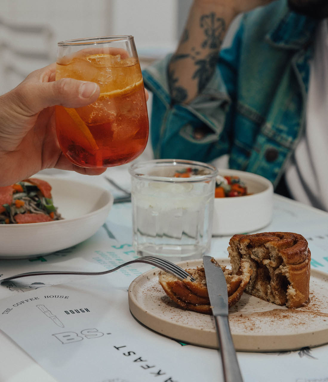 Στη νέα άφιξη με τα vintage έπιπλα και τις instagraμικές μίνιμαλ γραμμές (που έχει επιμεληθεί ο Δημήτρης Πεπόνης, πρώην creative & art director σε μεγάλες διαφημιστικές), πίσω από την ανοιχτή κουζίνα θα βρείτε τον Χρήστο Τσουλφά, τον σεφ και συνδημιουργό του που έχει περάσει από το μισελενάτο Jordnær της Κοπεγχάγης και πλέον ψήνει καθημερινά τα γλυκά ρολάκια (δοκιμάστε τα σκέτα ή με γέμιση όπως είναι η φιστίκι), ζυμώνει και ανοίγει φύλλο. Βγάζει καθημερινά πίτες όπως μια κοτόπιτα με κόκκινη πιπεριά, κρεμμύδι και μυρωδικά, μια παραδοσιακή σπανακόπιτα και λαδένια Κιμώλου.