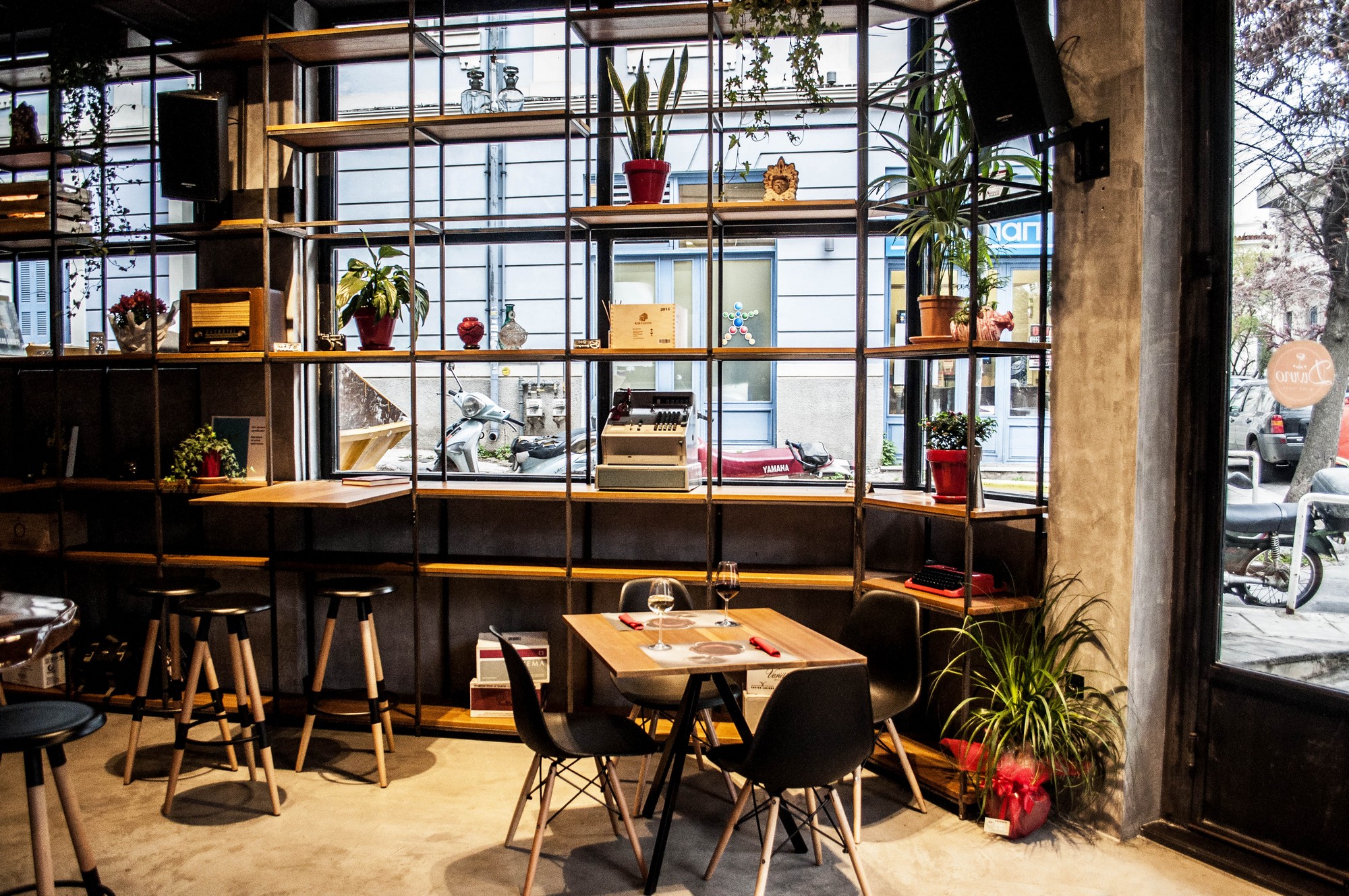 Πίσω από τις νεραντζιές που στέκουν φουντωτές και μοσχοβολούν, στο νο 11 της οδού Ακάμαντος στο Θησείο, βρίσκεται το Divino Wine Case. Ο Μάουρο Αλίτο, που έχει επιμεληθεί τη διακόσμηση, επέλεξε γκρι χρώμα για τις λιτές industrial επιφάνειες του χώρου, αλλά και μεγάλες τζαμαρίες προκειμένου το φως να μπαίνει ελεύθερα στο χώρο και το βλέμμα να μην εμποδίζεται. Γύρω ψηλά ράφια με γλάστρες με φυτά εσωτερικού χώρου, αλλά καιvintage αντικείμενα με έντονη σπιτίσια αύρα, διακοσμητικά στοιχεία τα οποία δίνουν χρώμα και θαλπωρή στον ουδέτερο καμβά του εσωτερικού.