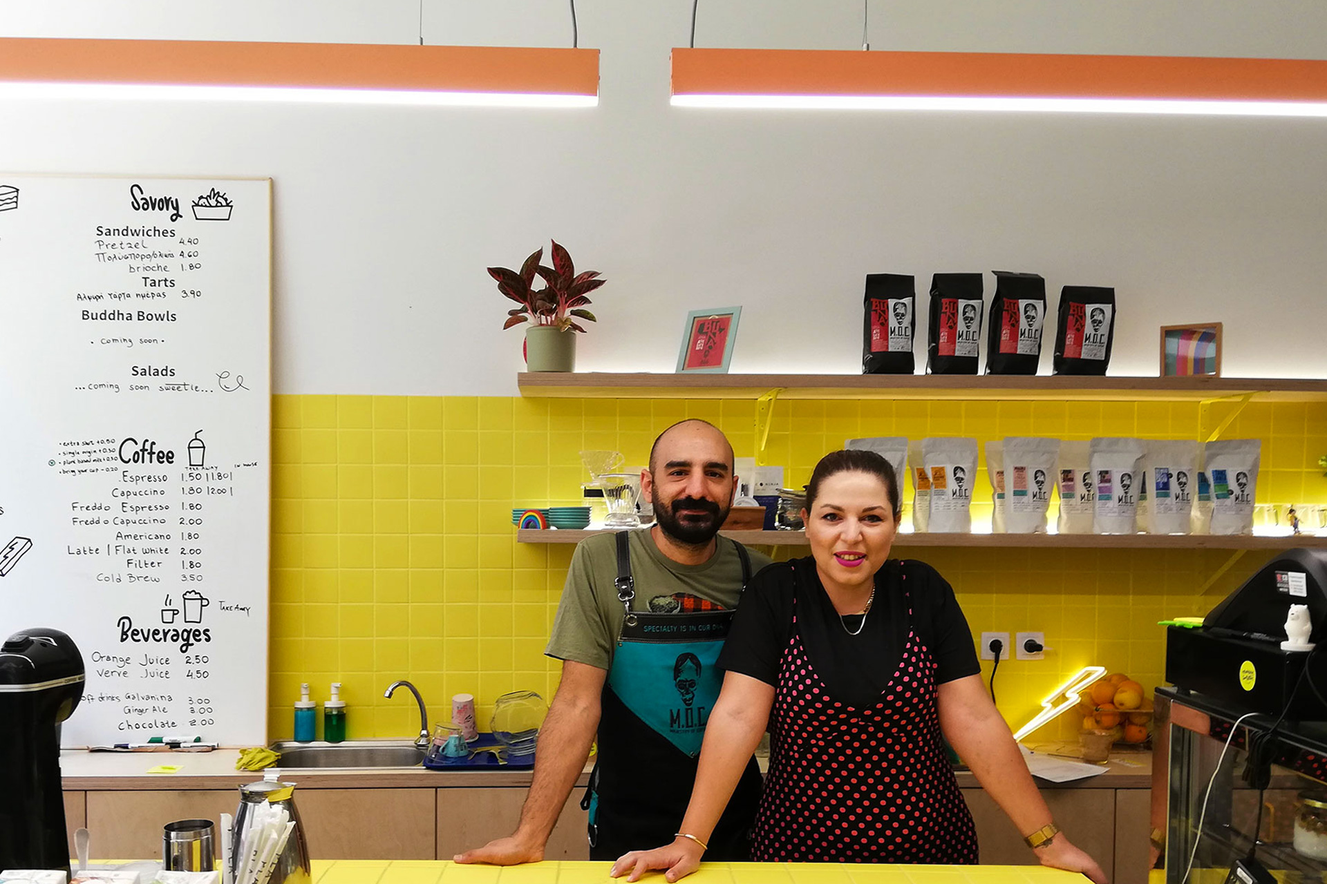 Κάπως έτσι αισθάνθηκα και όταν έφτασα ένα πρωί στο νέο καφέ που άνοιξε στη γειτονιά μου και με υποδέχτηκαν οι ιδιοκτήτες Ολίνα Αγγελίδου και Βασίλης Δενδρινός. Δεν ήταν μόνο τα χαμογελαστά πρόσωπά τους και η ευγένεια που τους χαρακτηρίζει αλλά και ο ίδιος ο χώρος και τα προϊόντα που προσφέρουν, όλα με σεβασμό στους ανθρώπους, τα ζώα και το περιβάλλον. Ζευγάρι και στη ζωή εδώ και 12 χρόνια και κάτοικοι και ίδιοι της Κυψέλης τα τελευταία πέντε, έχοντας ταξιδέψει και λατρέψει πολλά μαγαζιά στο εξωτερικό και με όνειρο να αποκτήσουν μια μέρα τον δικό τους χώρο, τον βρήκαν μετά από μεγάλη αναζήτηση στην οδό Ζακύνθου.