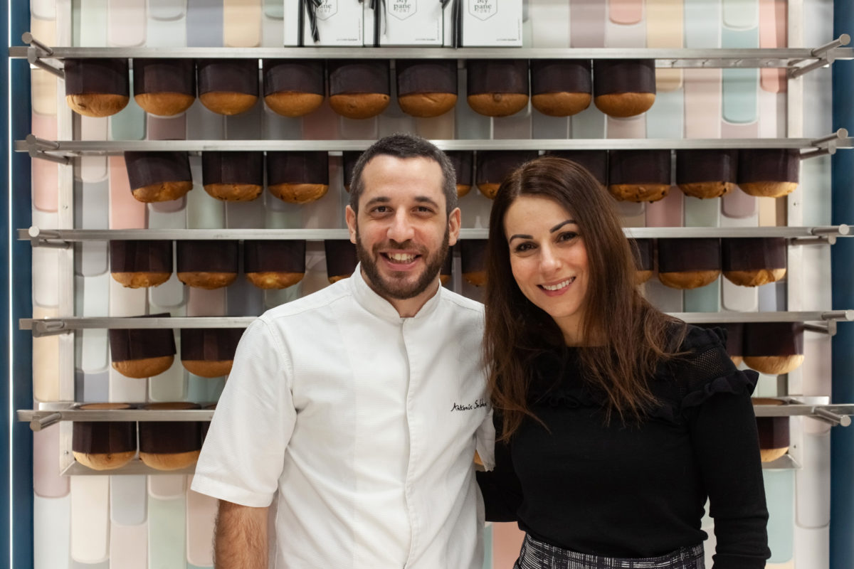 Στην Εριφύλης 2 στο Παγκράτι, μέσα από την ψηλή τζαμαρία ο Αντώνης Σελέκος, είναι σκυμμένος πάνω από ένα σαν μικρό έργο τέχνης panettone, τοποθετώντας πάνω του ευλαβικά μικρά κομμάτια σοκολάτας και πορτοκαλιού. Δύο μικρά φλυτζάνια gluhwein μετά, κι ενώ ο Αντώνης επανεξετάζει κάθε λεπτομέρεια πάνω από καραμελωμένα φουντούκια κι αλατισμένη καραμέλα, η Άννα Διονυσιάδου, «συνέταιρος στο έγκλημα» όπως λέει η ίδια γελώντας, μου εξηγεί πώς φτάσαμε τελικά να βρισκόμαστε στην καρδιά της Αθήνας, με δεκάδες panettone γύρω μας.