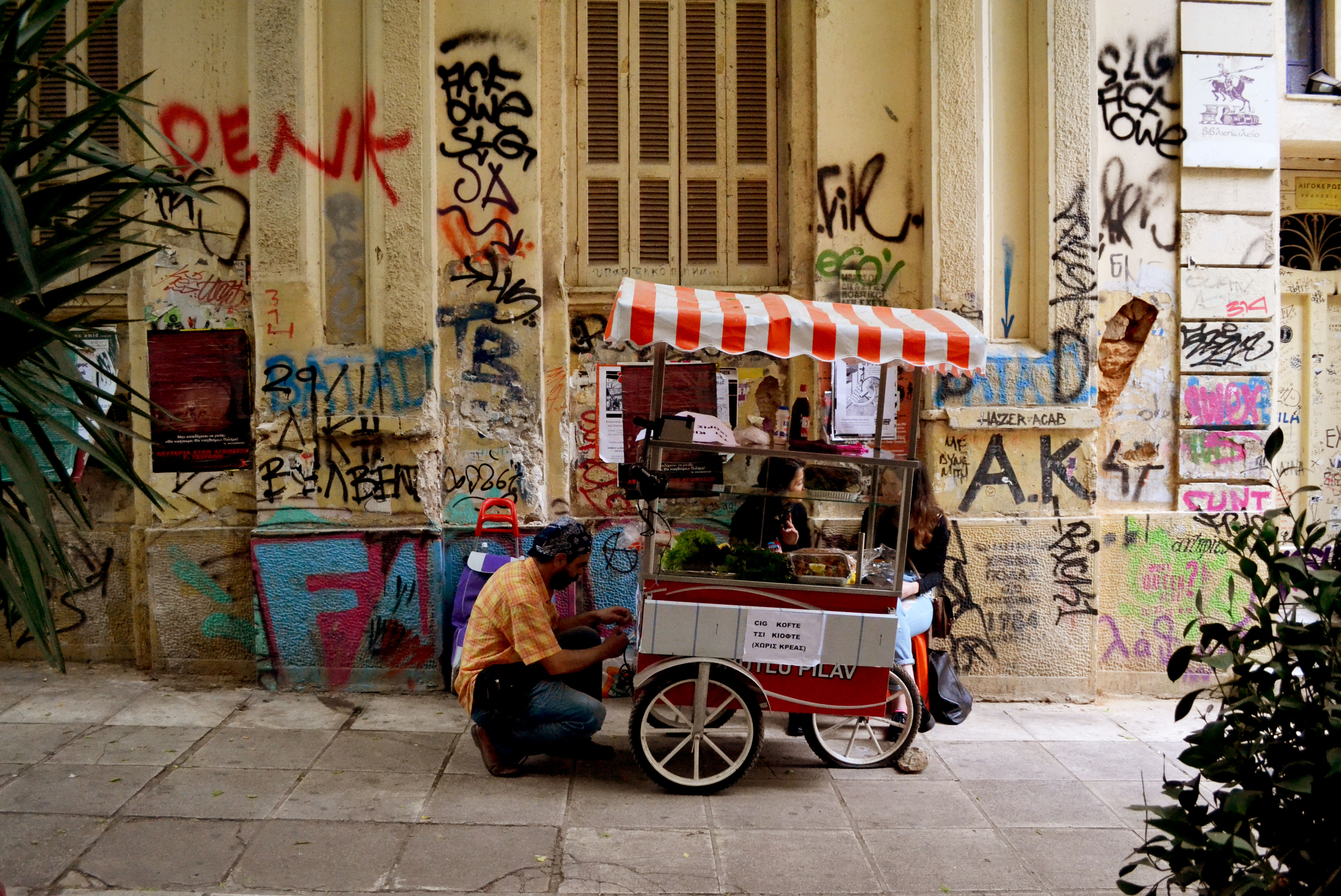 Ο πεζόδρομος της Τσαμαδού είναι το «μυστικό πέρασμα» από την Τοσίτσα στην πλατεία Εξαρχείων, ένα πέρασμα που σφύζει καθημερινά από ζωή. Εκεί βρίσκεται το Στέκι μεταναστών και η Κατάληψη Τσαμαδού, όπου πραγματοποιούνται καθημερινά κοινωνικές δράσεις από αλληλέγγυους. Στον κήπου που έχει διαμορφωθεί δίπλα στο Στέκι, μπορείς να πιεις τον καφέ σου και να ακούσεις ιστορίες ανθρώπων που έχουν περάσει πολλά. Εκεί άκουσα την ιστορία της Αϊνούρ και του Άπο. Δύο φίλων που εδώ κι ένα μήνα έχουν στήσει μια αυτοσχέδια καντίνα, προσφέροντας στους περαστικούς το παραδοσιακό τούρκικο cig kofte.