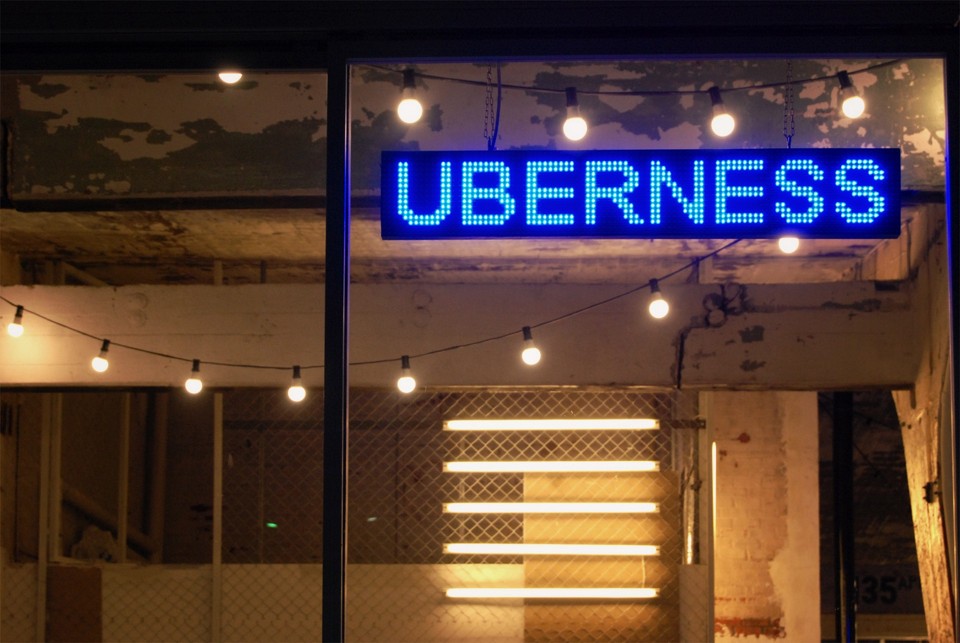 Στον χώρο της ανοιχτής, εννοείται, κουζίνας πάνω από τα κεφάλια μας ένας φωτεινός πίνακας μετράει αντίστροφα «Δεν έχει ακόμη ρυθμιστεί σωστά. Την πρώτη ημέρα που θα ανοίξουμε θα ξεκινήσει από τις 365 ημέρες να μετρά αντίστροφα και όταν μηδενίσει, σε ένα χρόνο από τώρα, θα δούμε τι θα κάνουμε. Μπορεί το Uberness να γίνει κάτι άλλο, ξέρω κι εγώ πώς θα μου ρθει;».